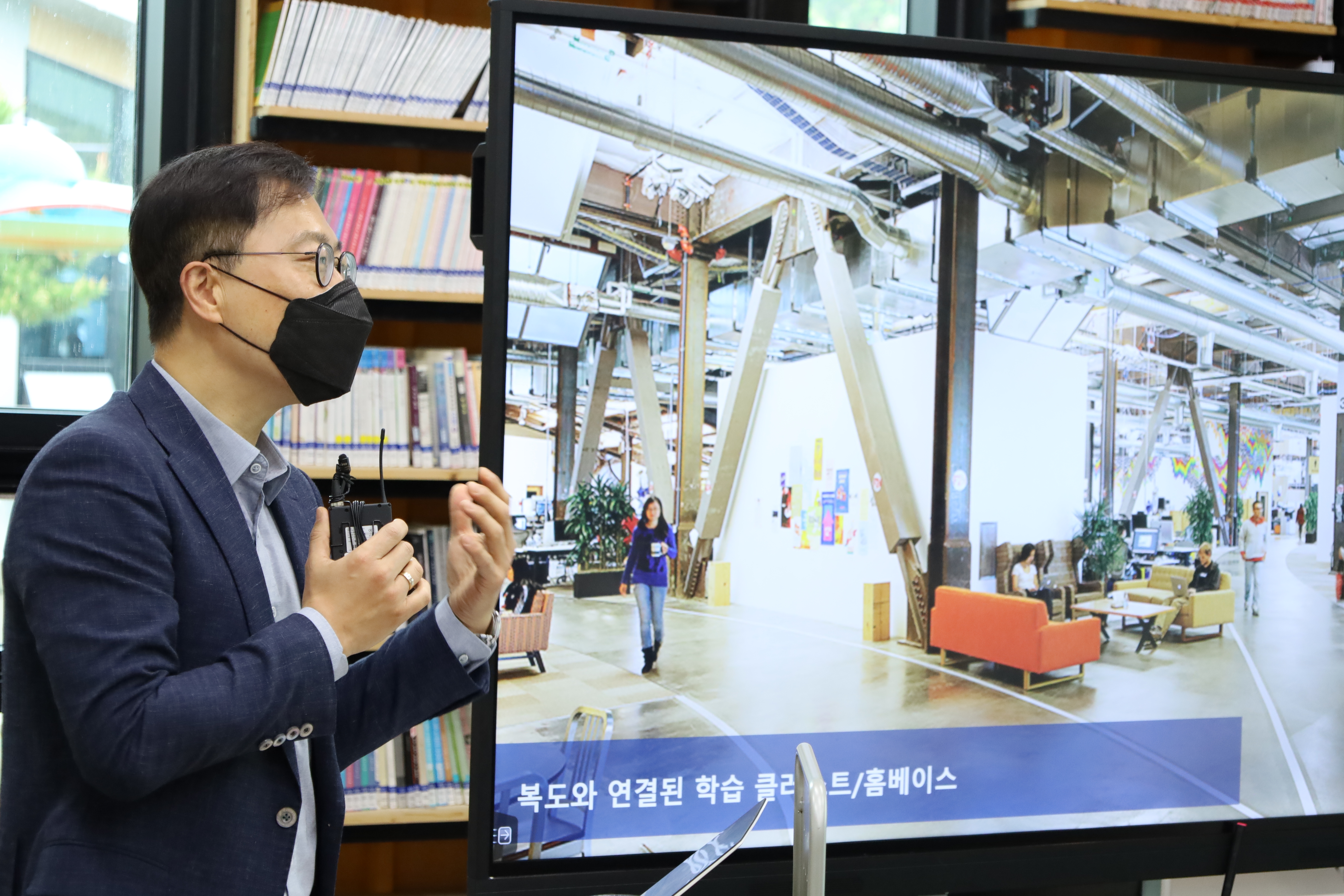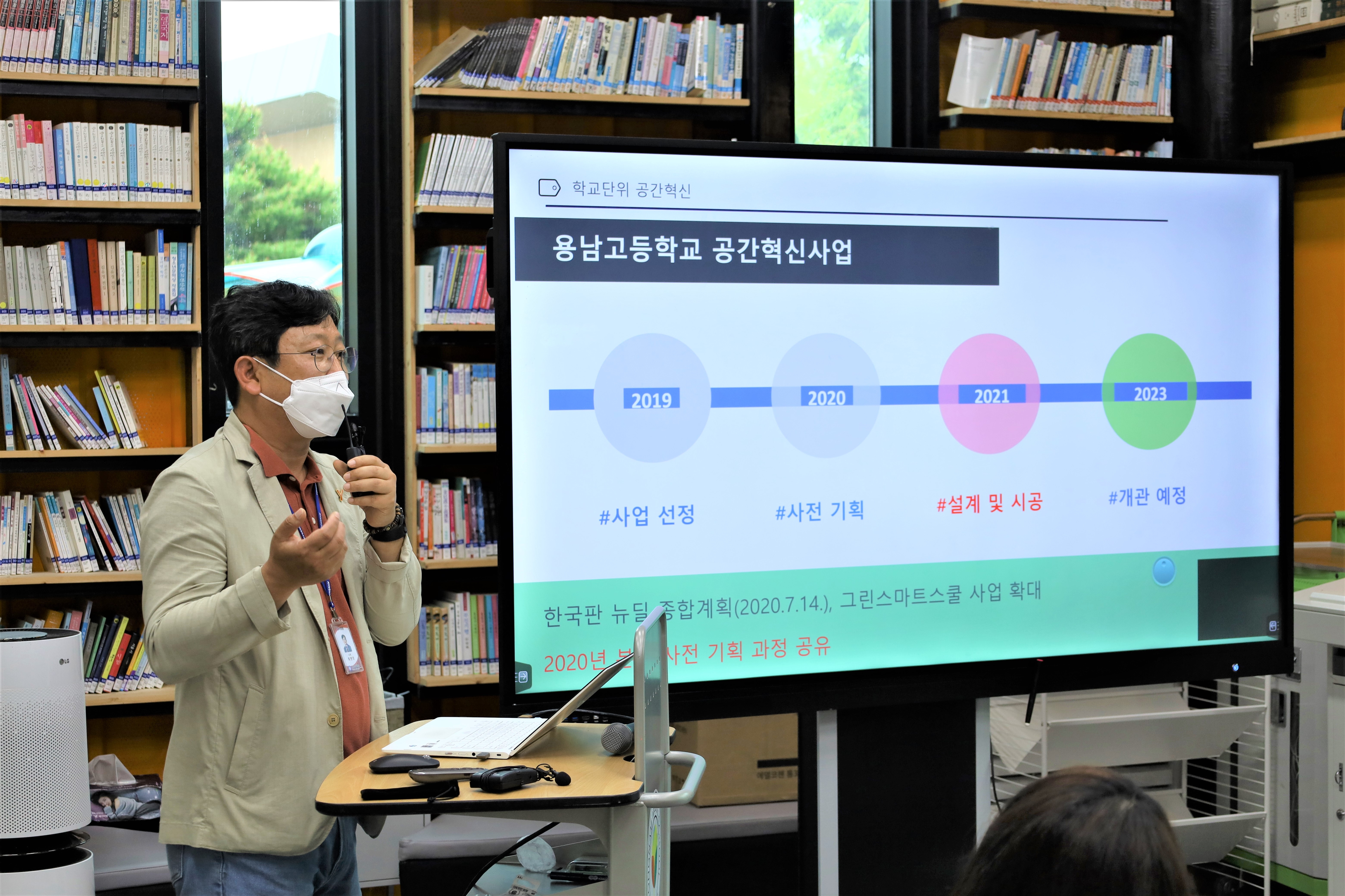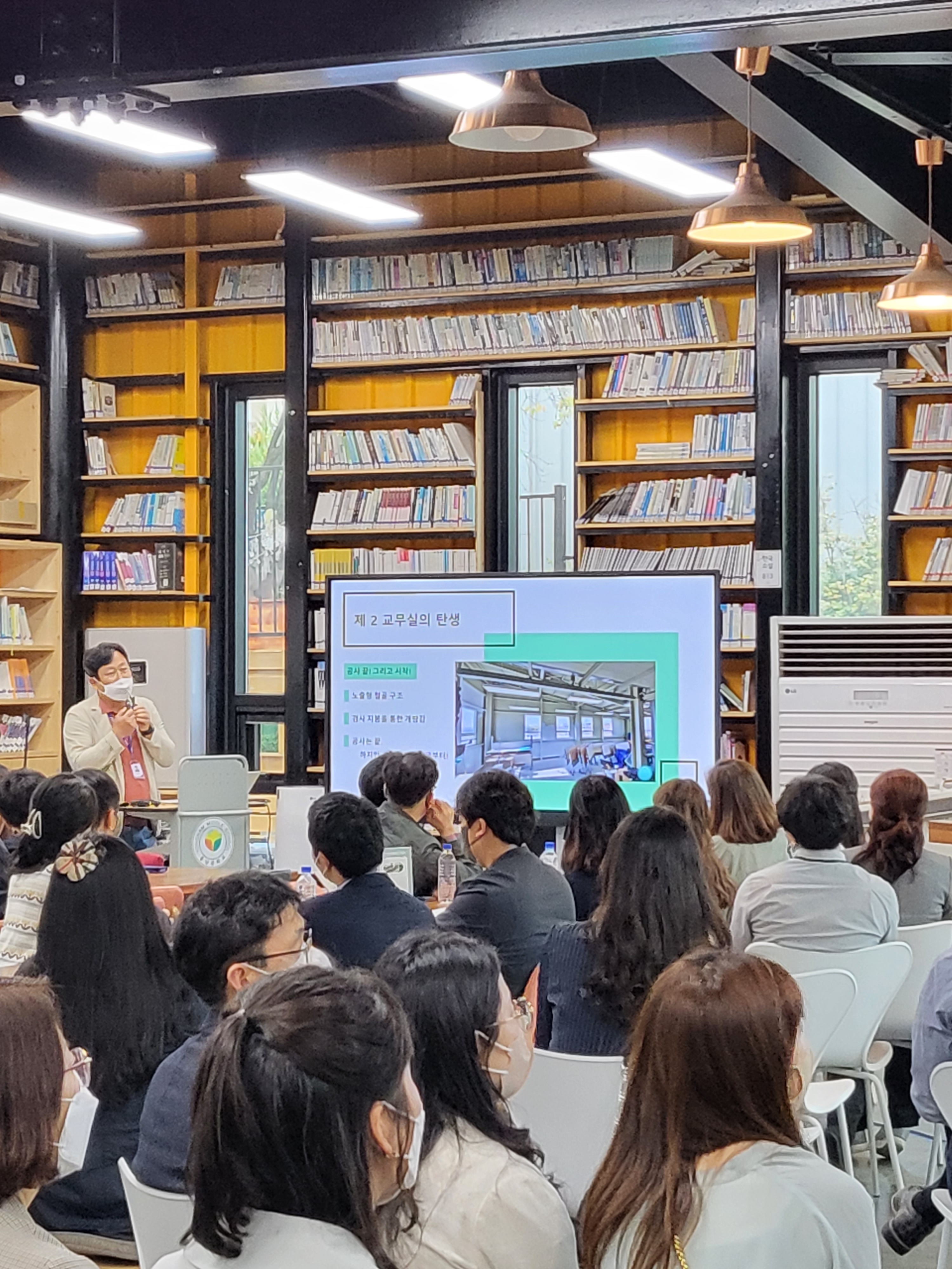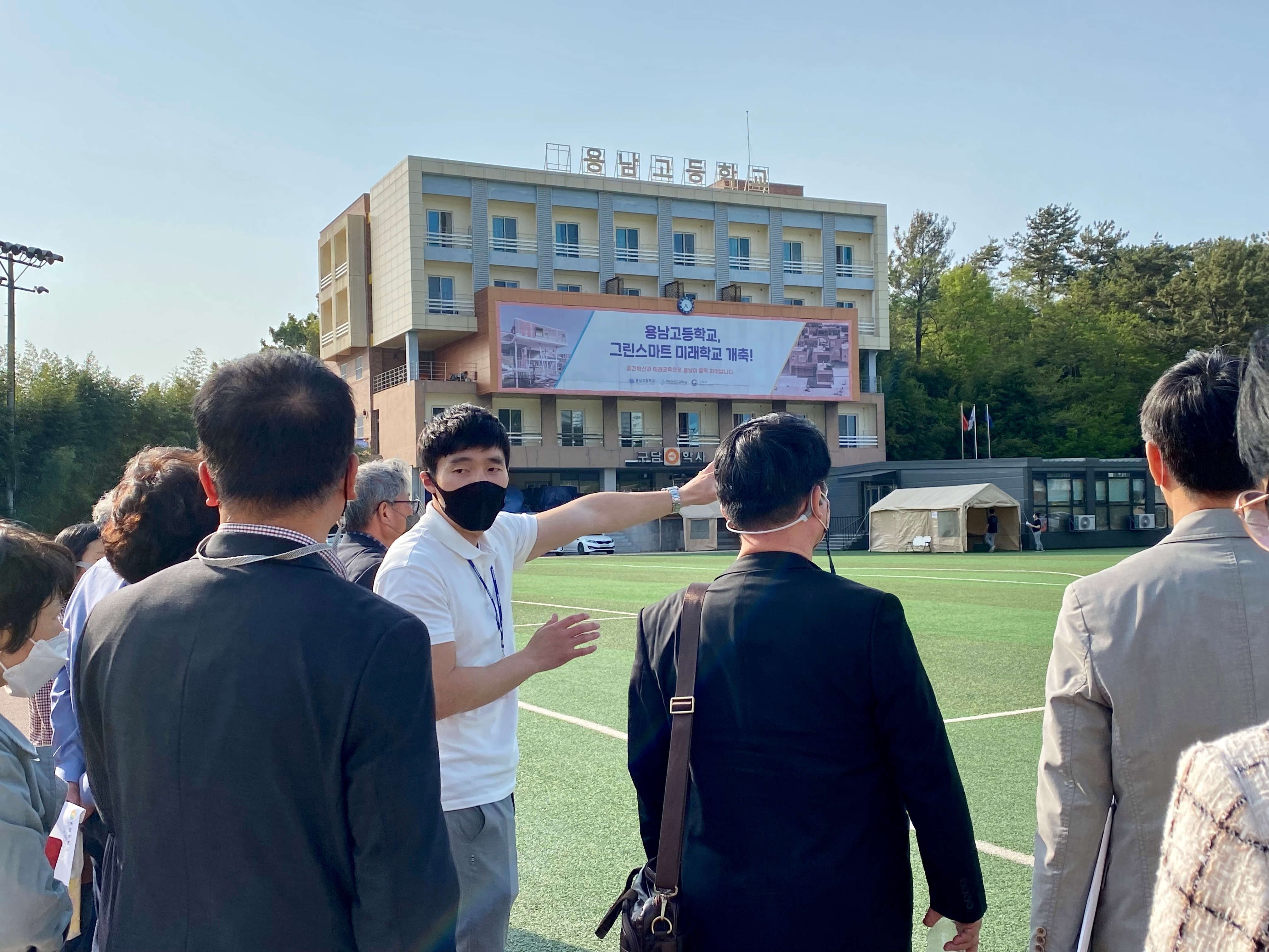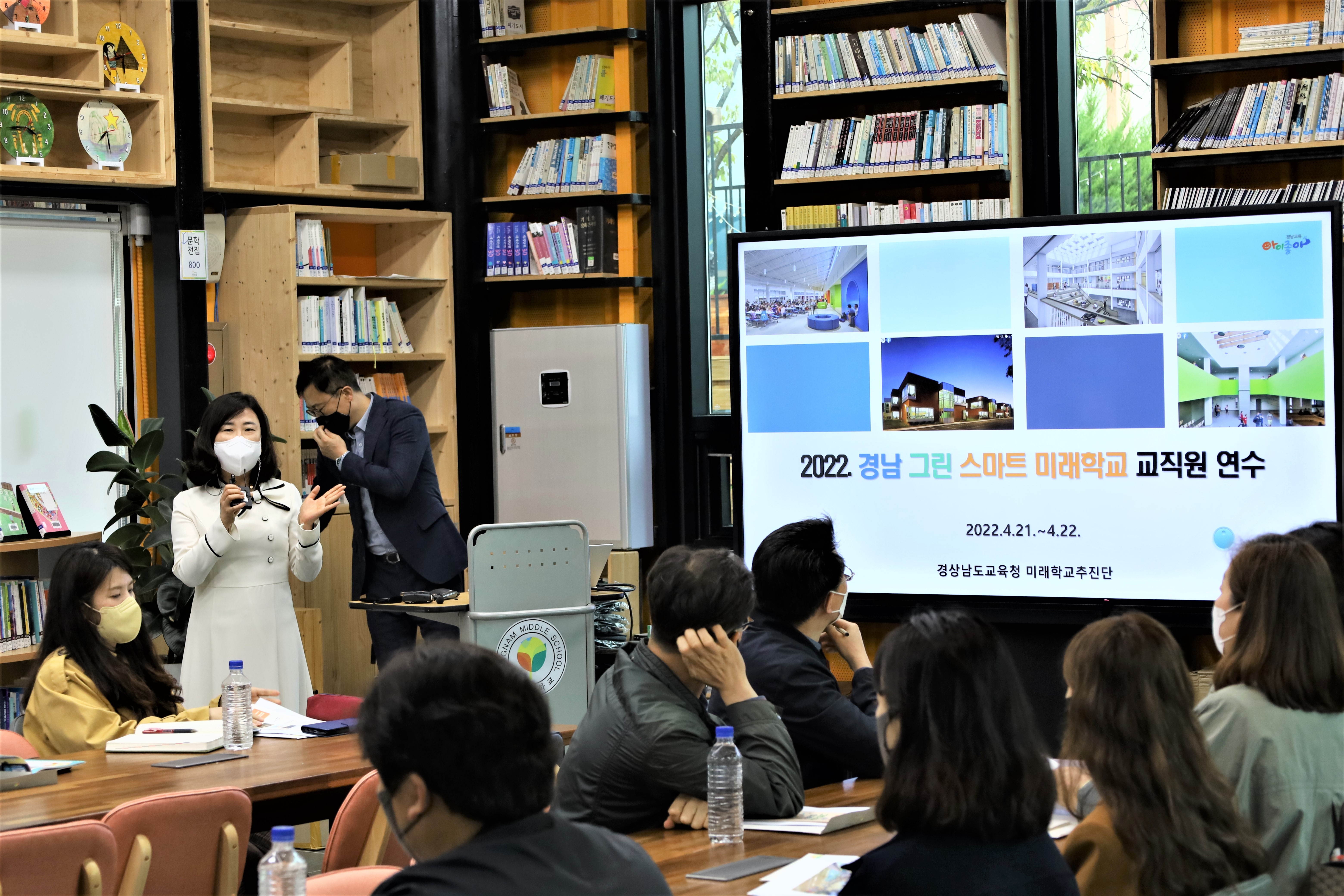 경남교육청 미래학교추진단에서 주최한 <경남 그린스마트 미래학교 교직원 연수>가 2022.4.21.(목)~22.(금) 양일에 걸쳐 용남중 지혜샘에서 열렸습니다. 본교 교장 최연진 선생님의 사례 발표가 있었으며, 약 150여 명의 타교 교직원들이 용남중학교 및 본교 모듈러 교실을 견학하였습니다. 공간의 변화가 경남 교육의 변화로 이어지기를 기대합니다.