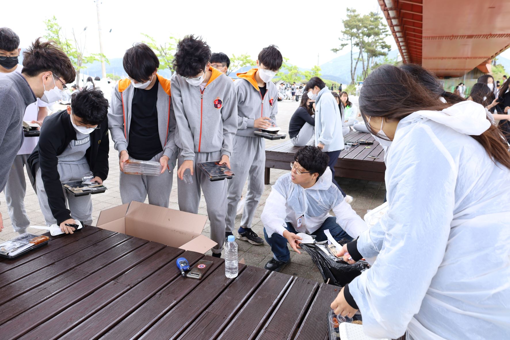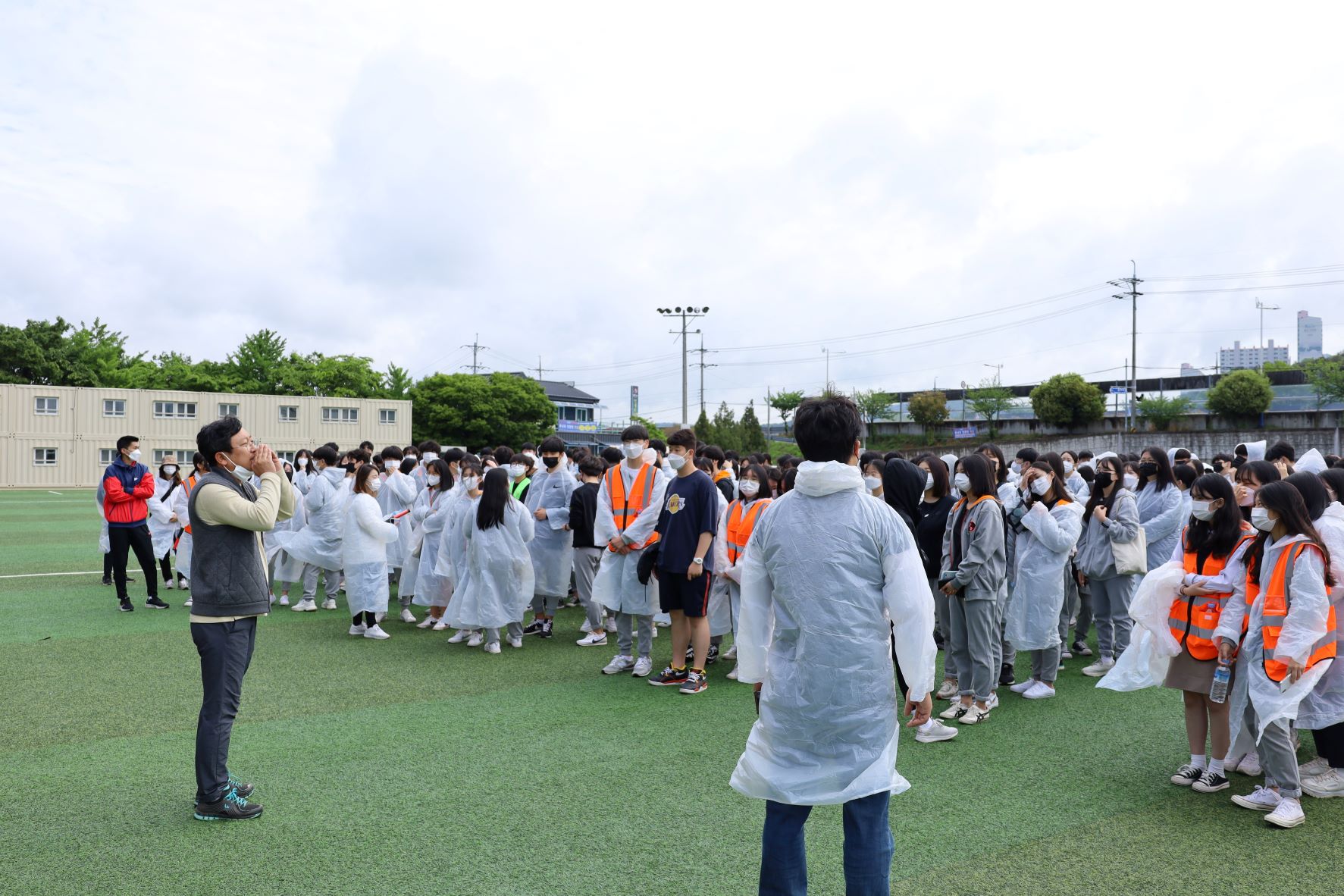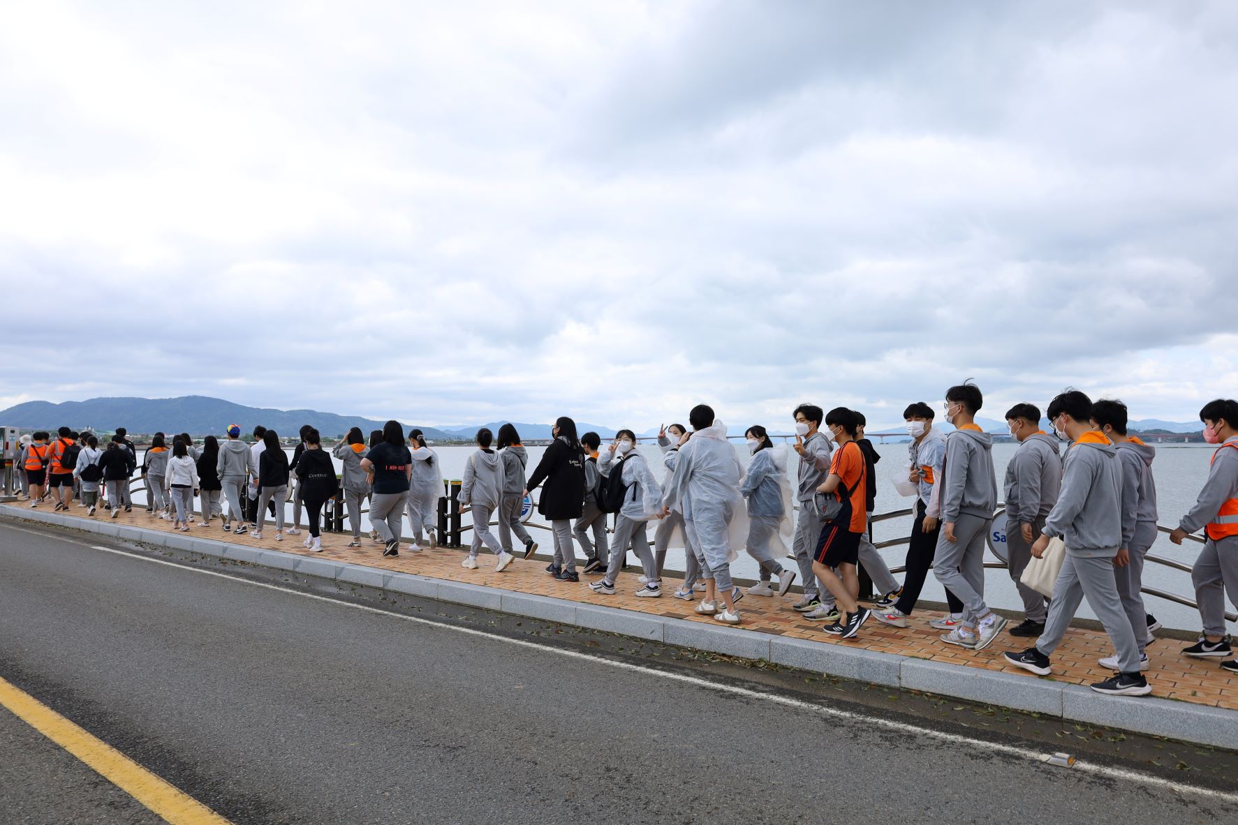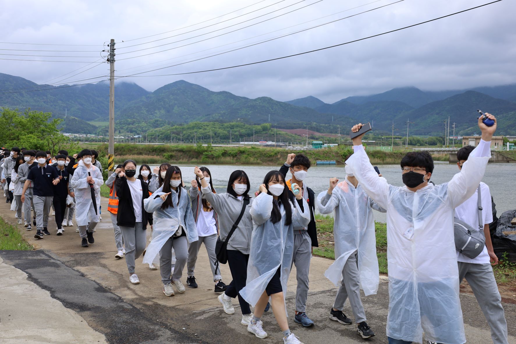 용남고등학교 학생에 걸맞는 바른 행군질서와 포기하지 않는 근성을 보여주었습니다.