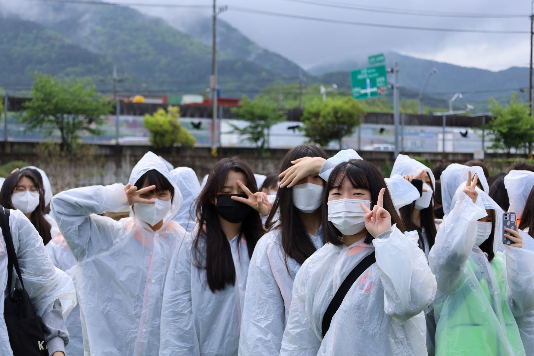 교장선생님의 훈화 말씀을 듣고 출발합니다.