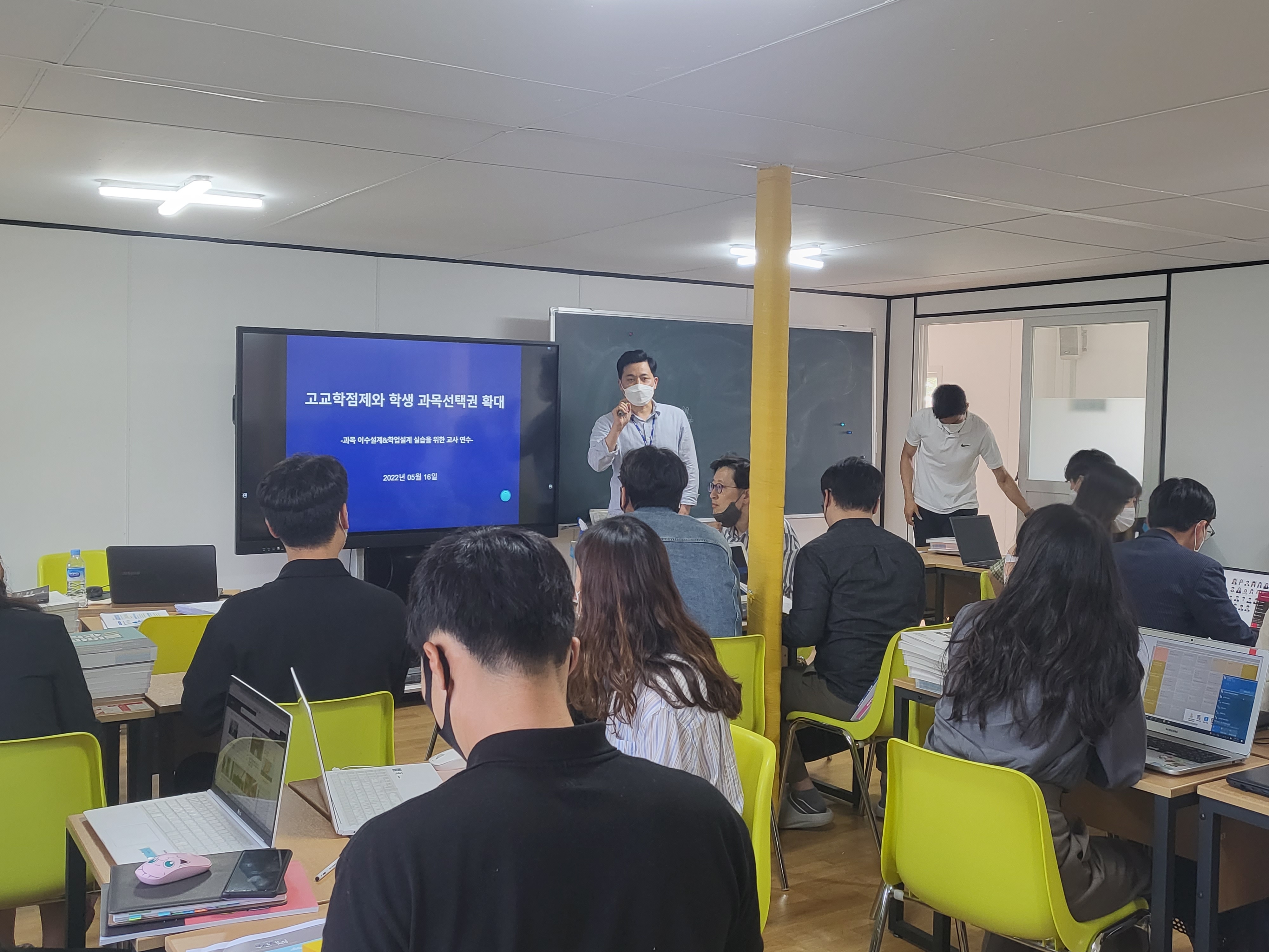고교학점제 대비, 학생 과목선택권 확대를 위한 교사 연수를 진행하였습니다. 선생님들이 학생의 입장이 되어서 과목선택/학업설계의 어려움을 이해하고 선생님의 역할을 이해하고자 진행하였습니다.
