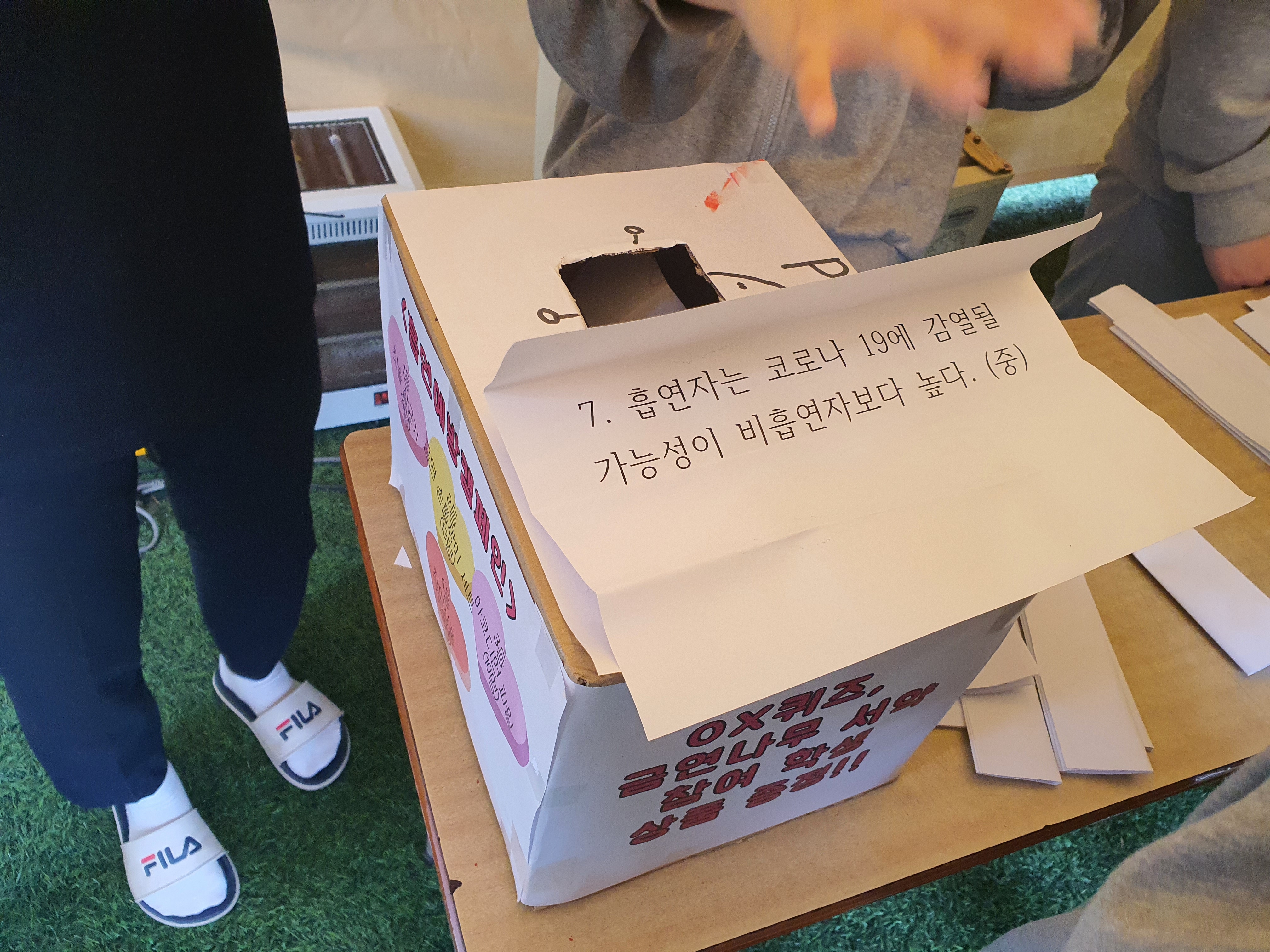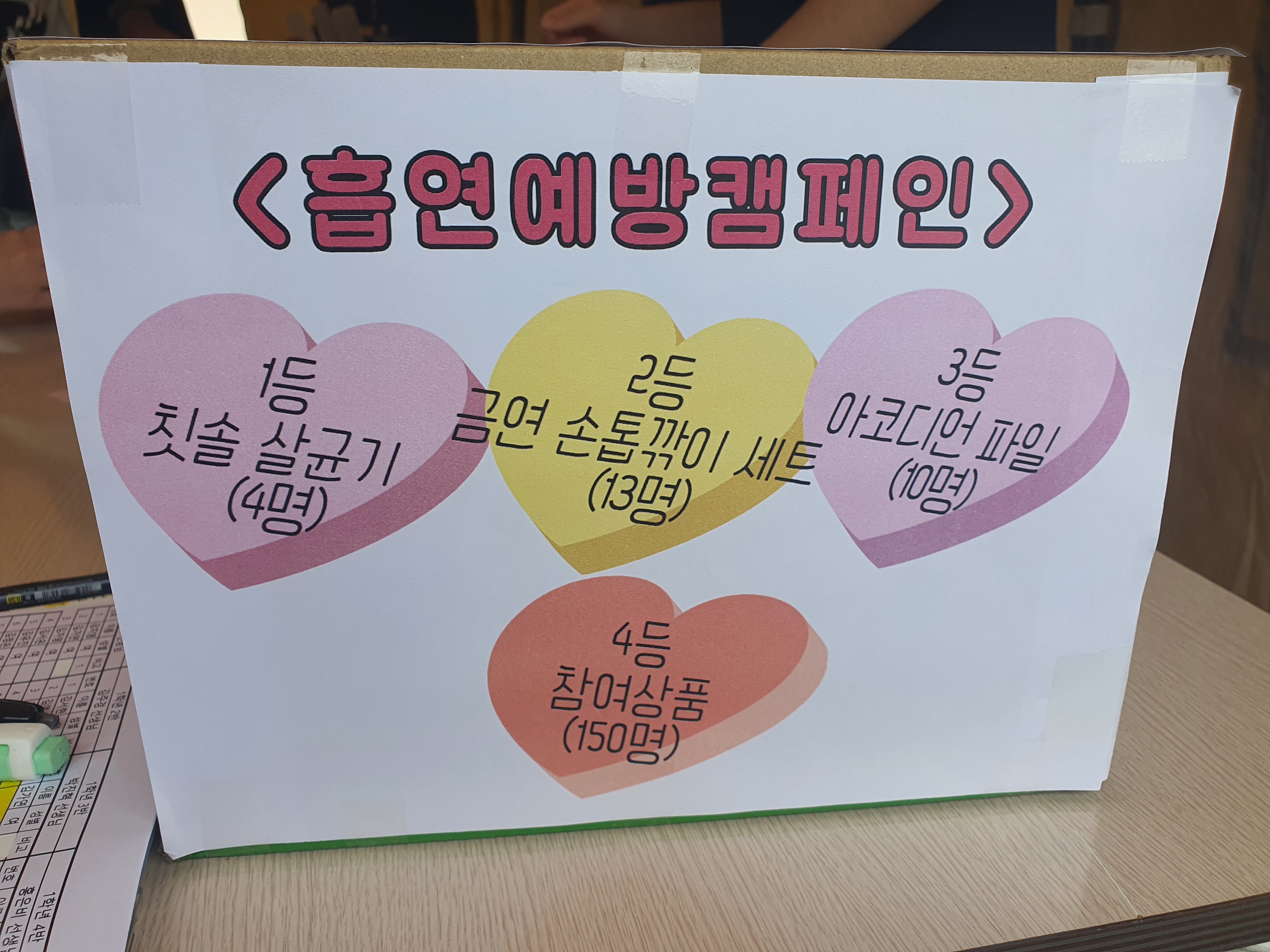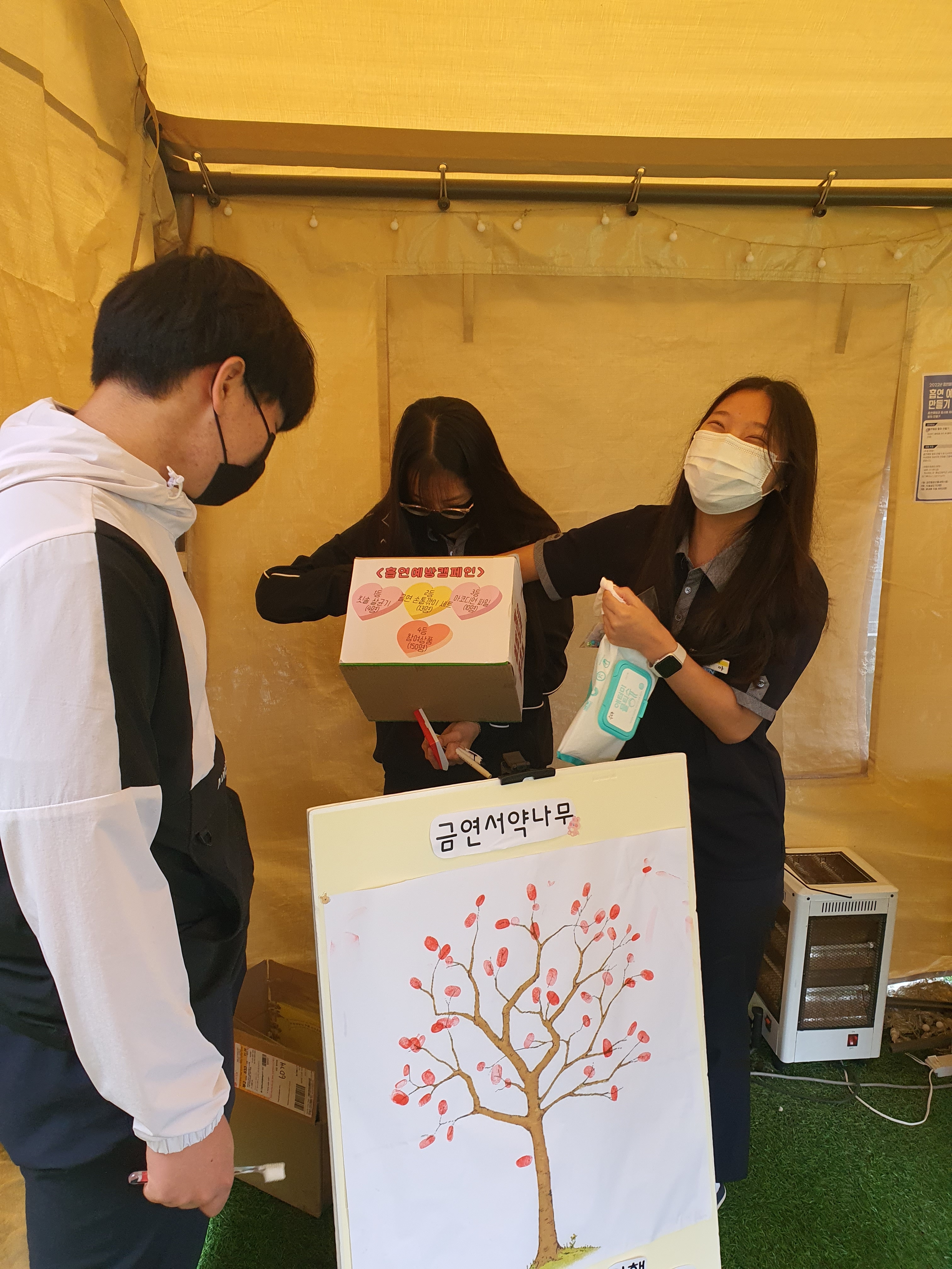 금연 OX 퀴즈, 금연 팔찌 만들기, 폐활량 테스트, 금연서약나무에 도장 찍기 활동 등으로 구성된 흡연예방캠페인에