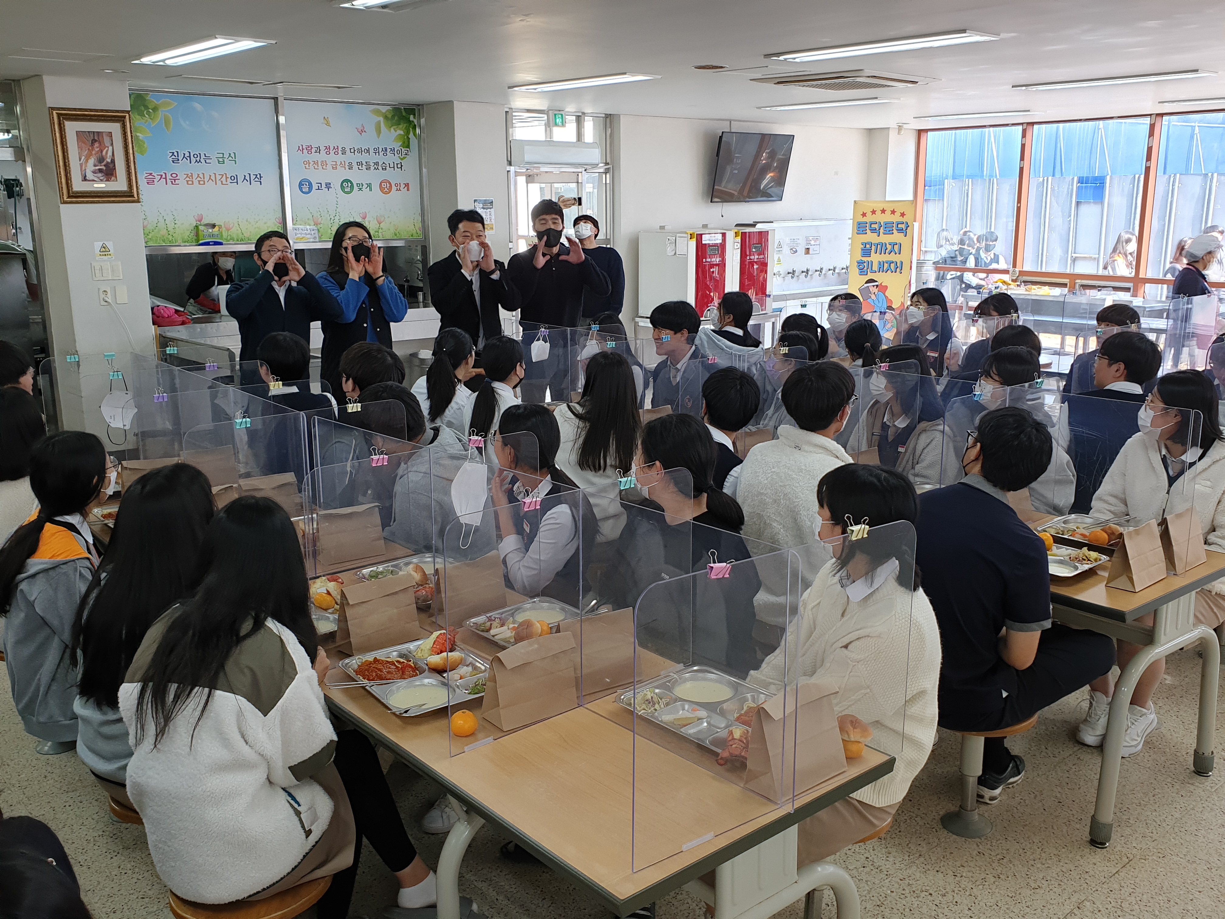 3학년 담임 선생님들은 배식과 함께 응원의 말을 전하였습니다.
