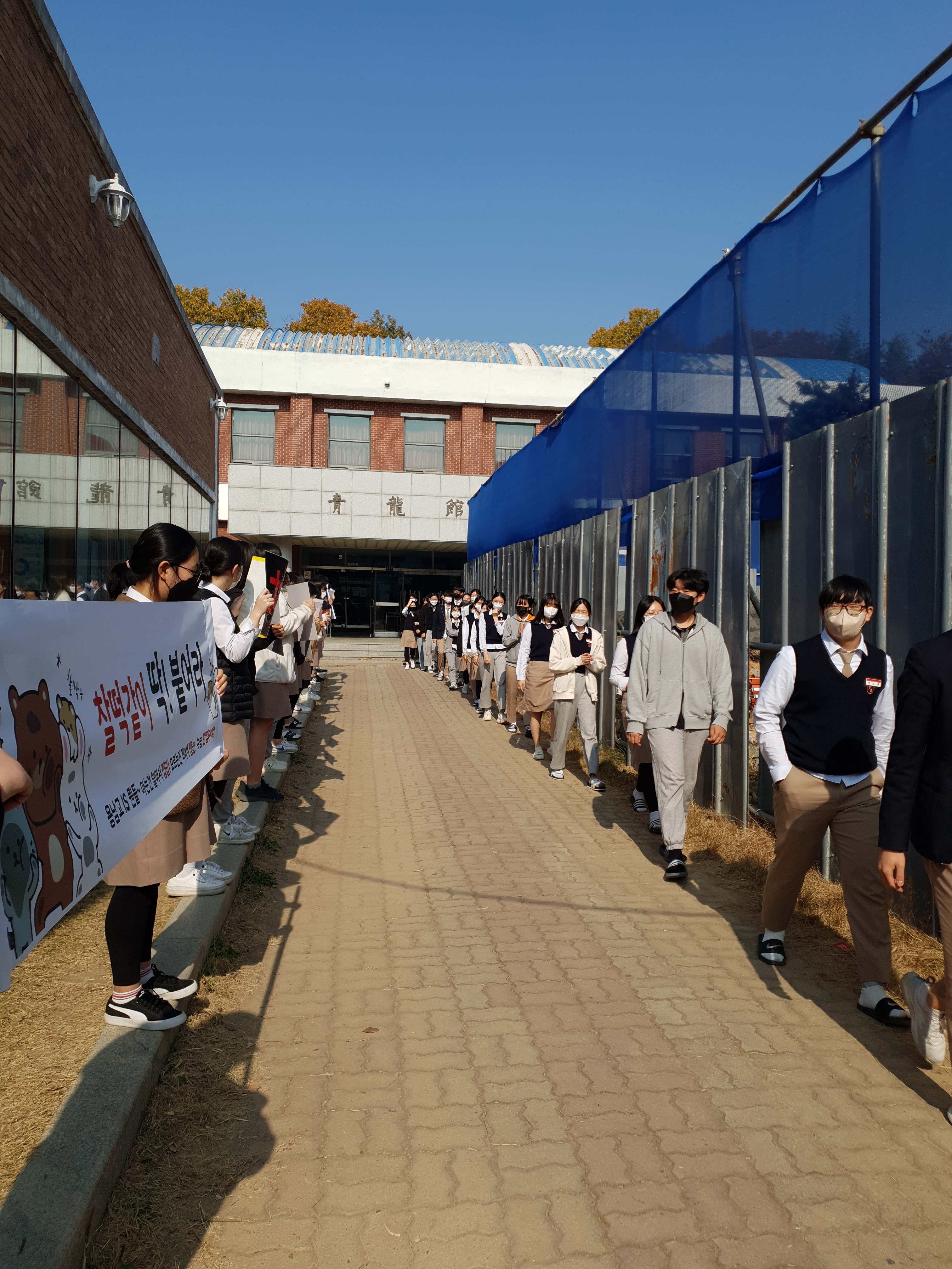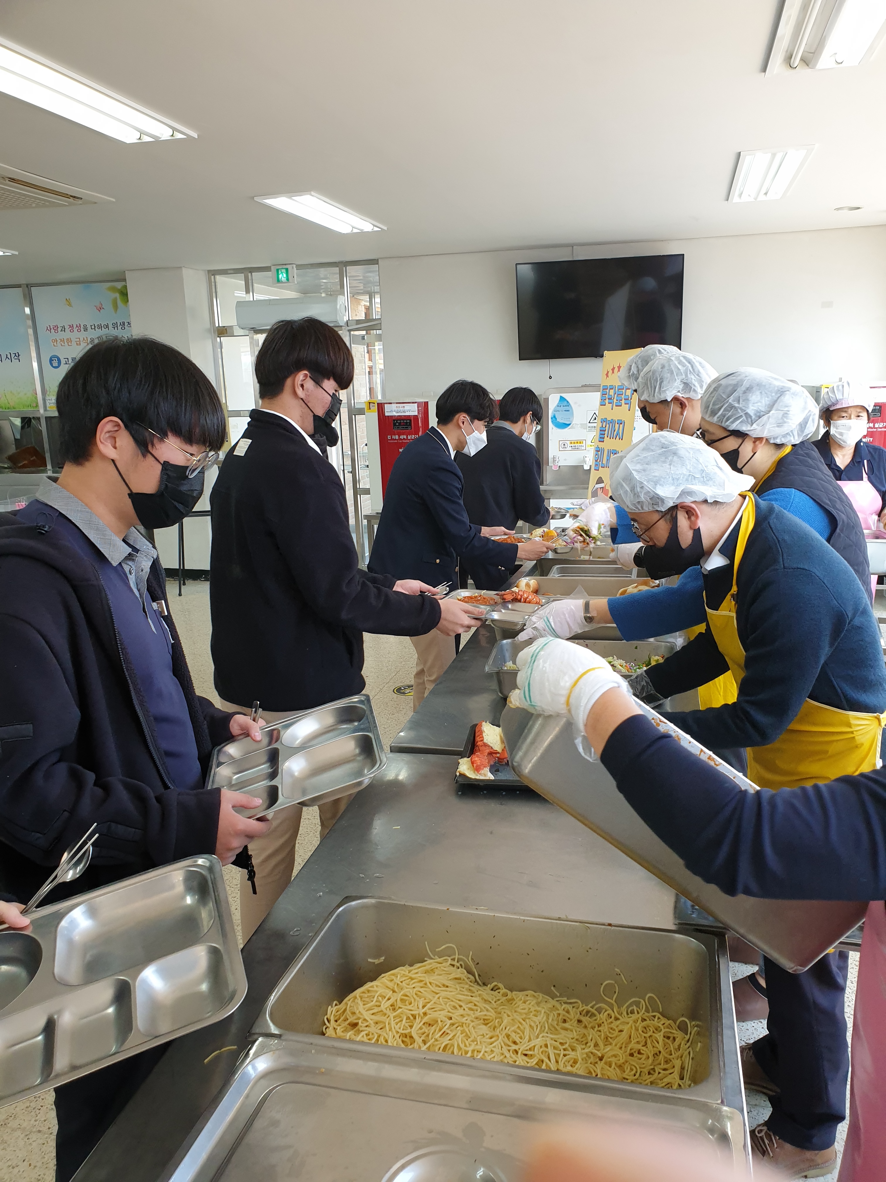 수능을 6일 앞두고 다음 주부터는 온라인 수업으로 전환되는 관계로, 11월 11일 금요일. 점심시간에 <수제비>행사가 진행되었습니다.