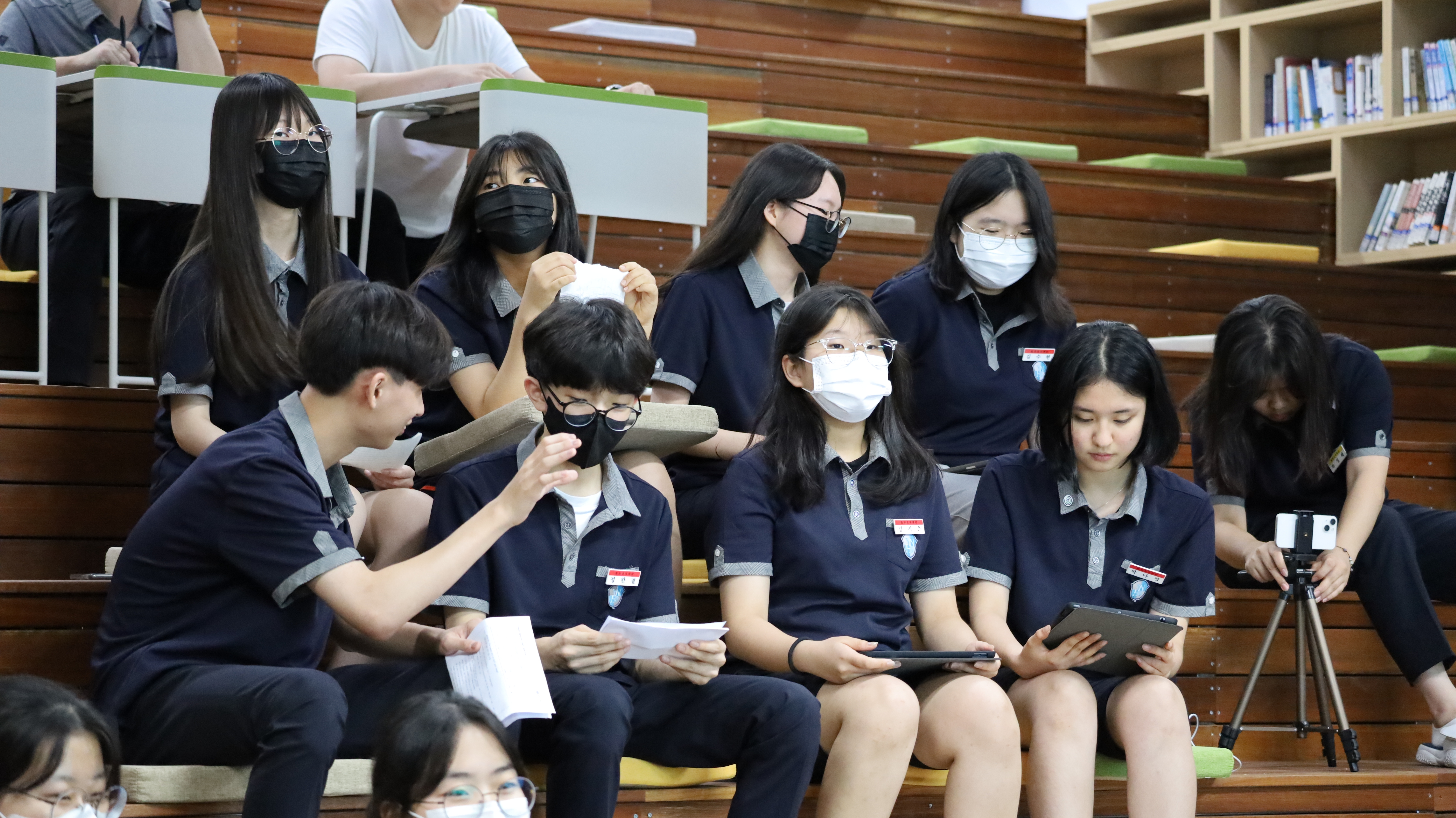 학생들이 자신의 영어 실력을 활용하여 다양한 주제에 대해 발표하고 의견을 나눕니다.