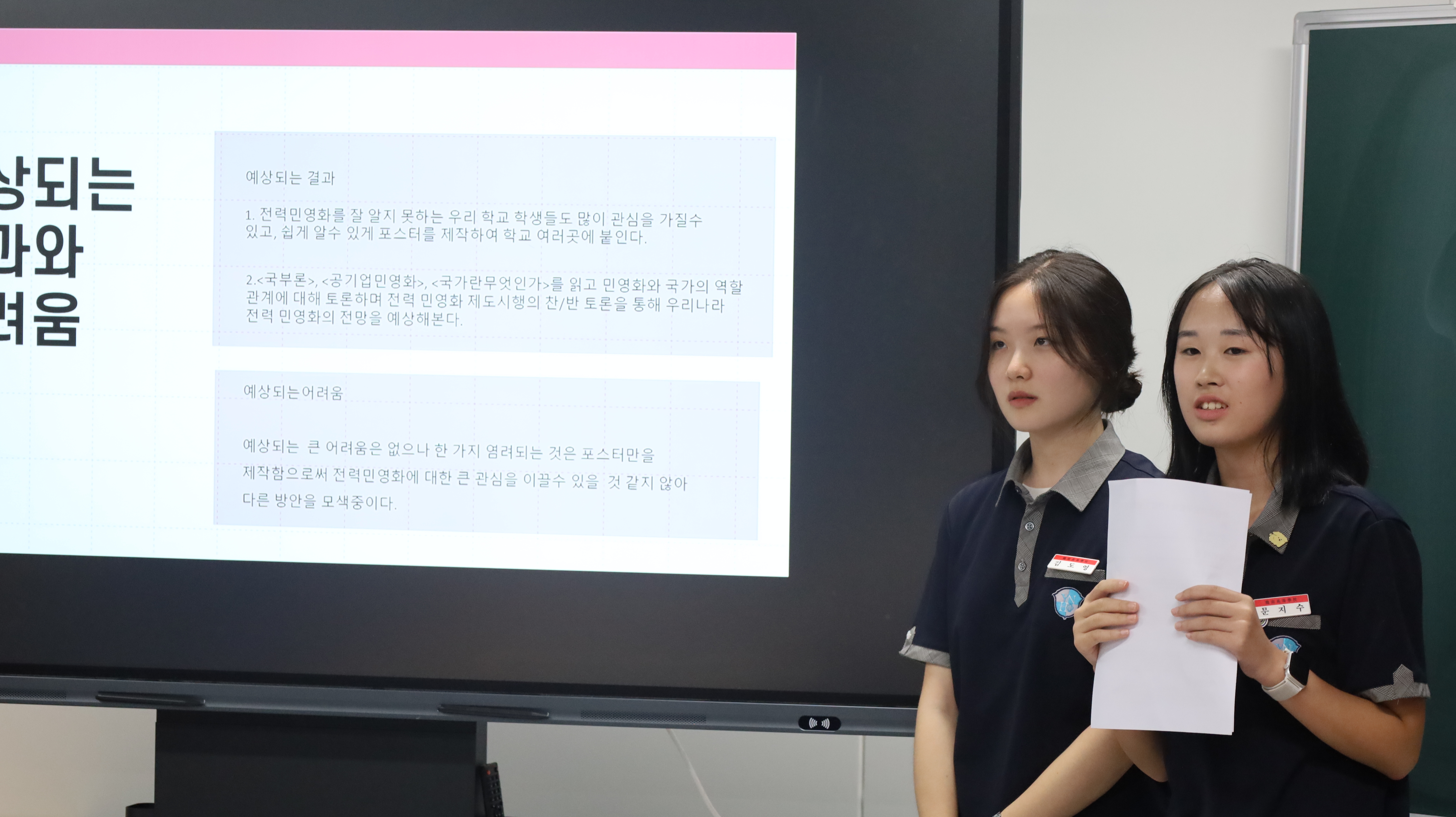 1학년 자율주제탐구활동 개요서를 발표하는 시간을 가졌습니다.