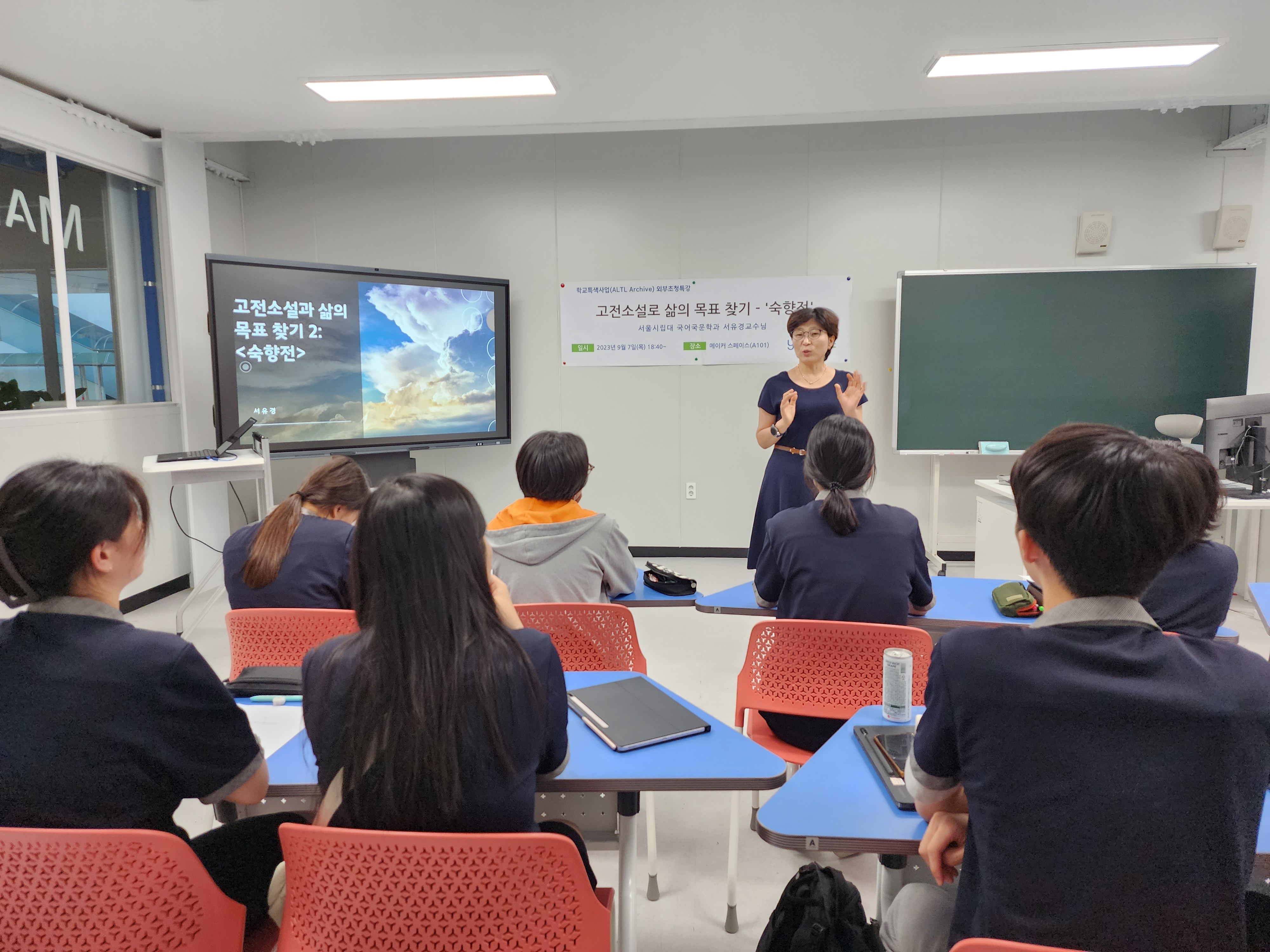 o 학교특색사업으로 인문학적 소양 함양을 위한 강연으로 인문학 시리즈 2번째 강연으로 고전소설 '숙향전'을 통해 삶의 목적