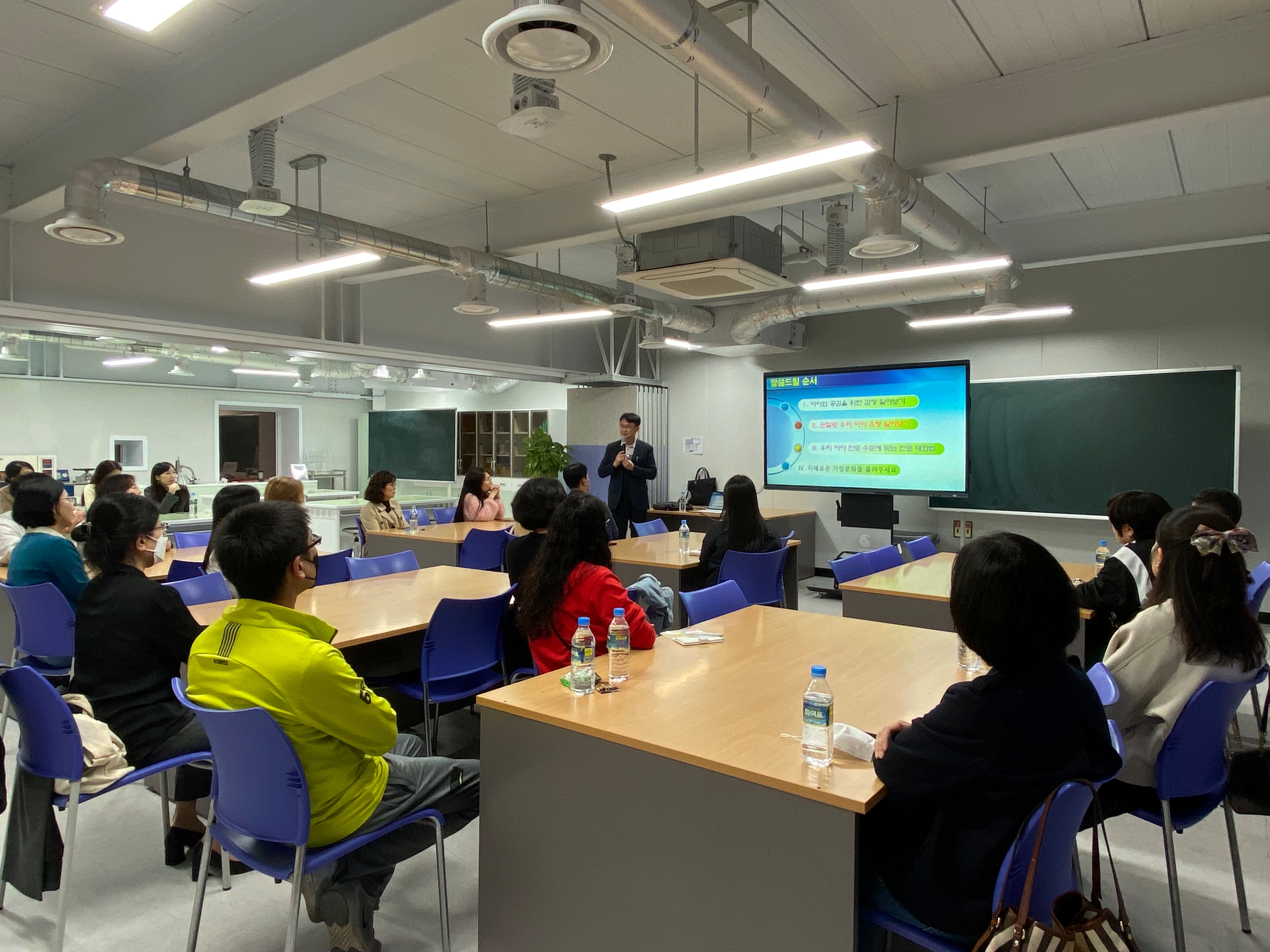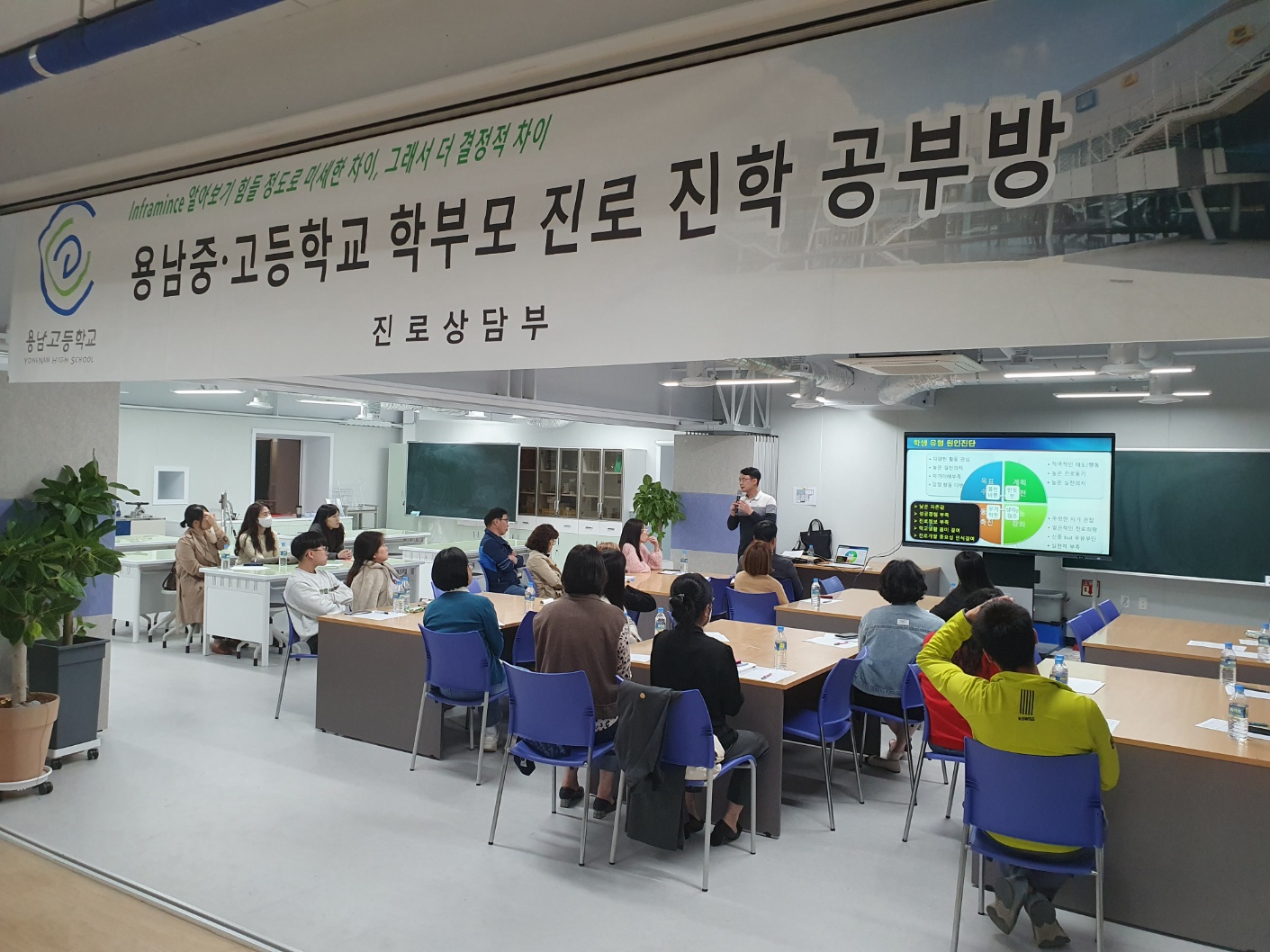 지난 11월 3일(금) 야간에 용남중고등학교 학부모 대상 진로진학공부방 연수(4차, 감정 코칭과 자녀 유형별 진로상담 방법)를 진행하였습니다.
