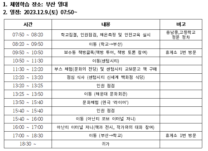 지난 12월 9일(토), 독서우수학생 및 독서멘토를 대상으로 선진 독서프로그램 및 문화체험을 위한 책방투어를 실시했습니다.
