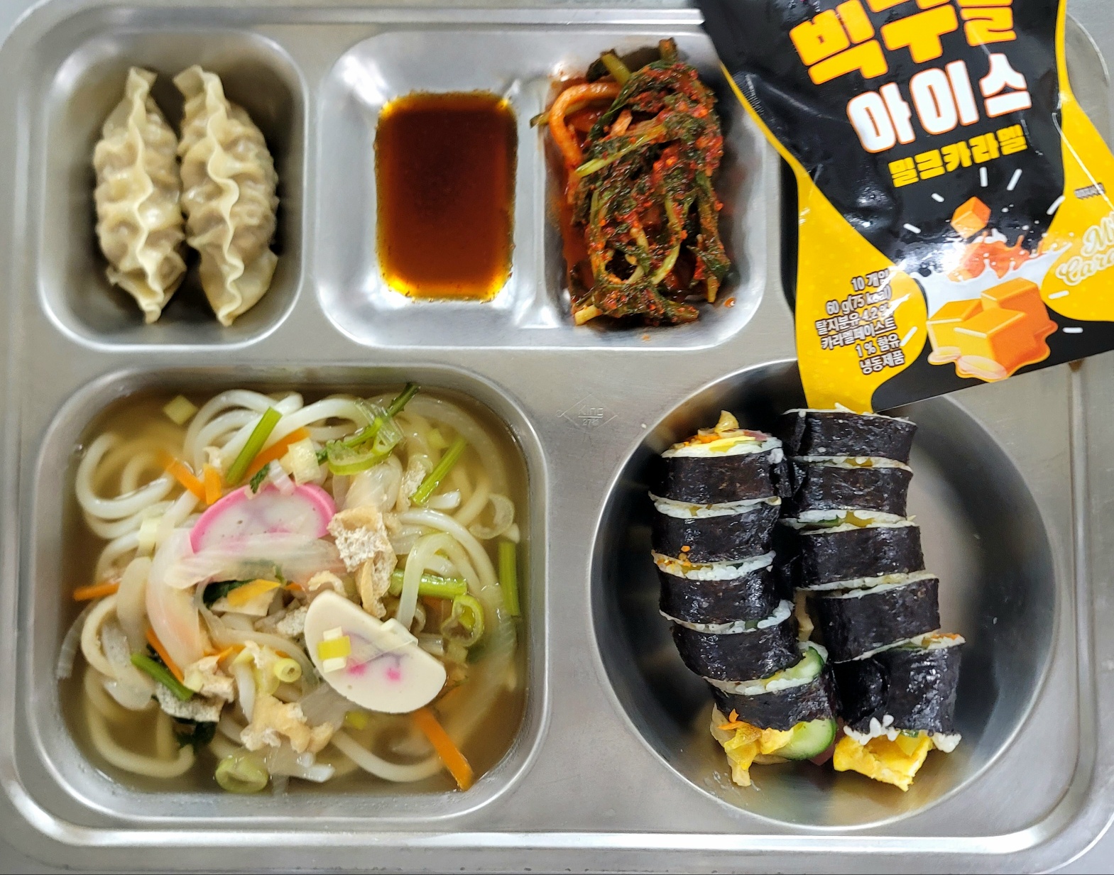 [석식] 김밥,어묵유부우동,왕교자찐만두,열무김치,빅구슬아이스크림
