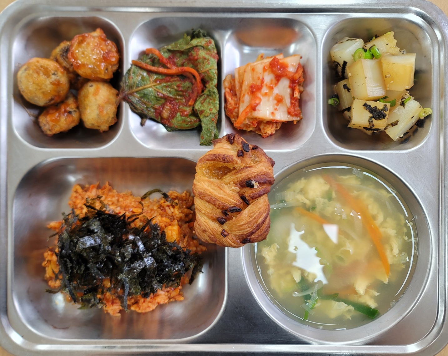[중식] 닭살야채볶음밥,파송송계란국,순대강정,청포묵무침,양념깻잎지,배추김치,메이플피칸파이