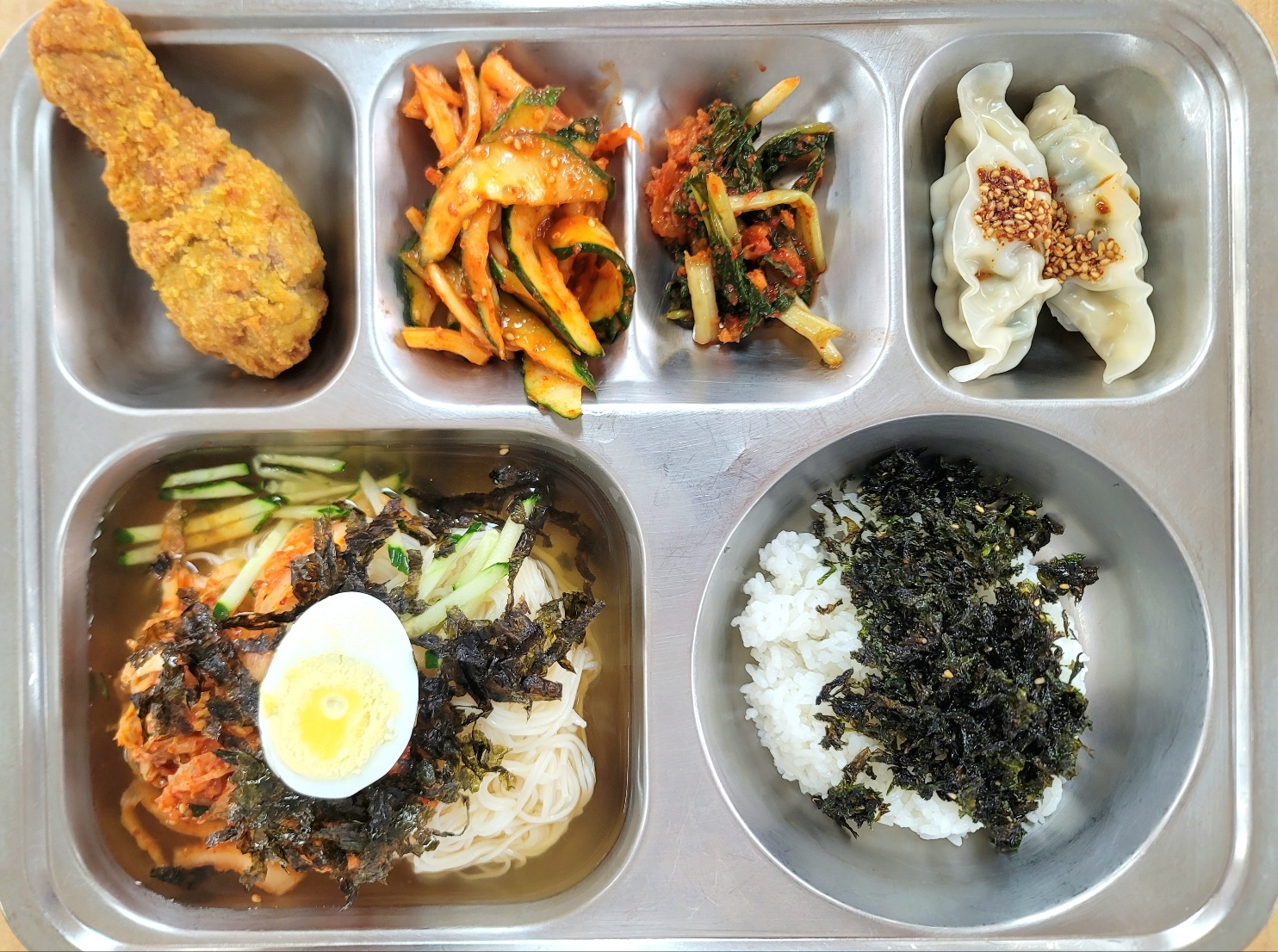 [석식] 미니밥*파래자밥(자율),김치말이냉국수,와사삭닭다리,왕교자찐만두,도라지오이무침(자율),열무김치