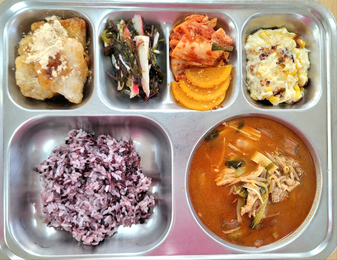 [중식] 찹쌀흑미밥,용남마라탕,콩고물꿔바로우,콘치즈오븐구이,단무지무침,해초샐러드,배추김치