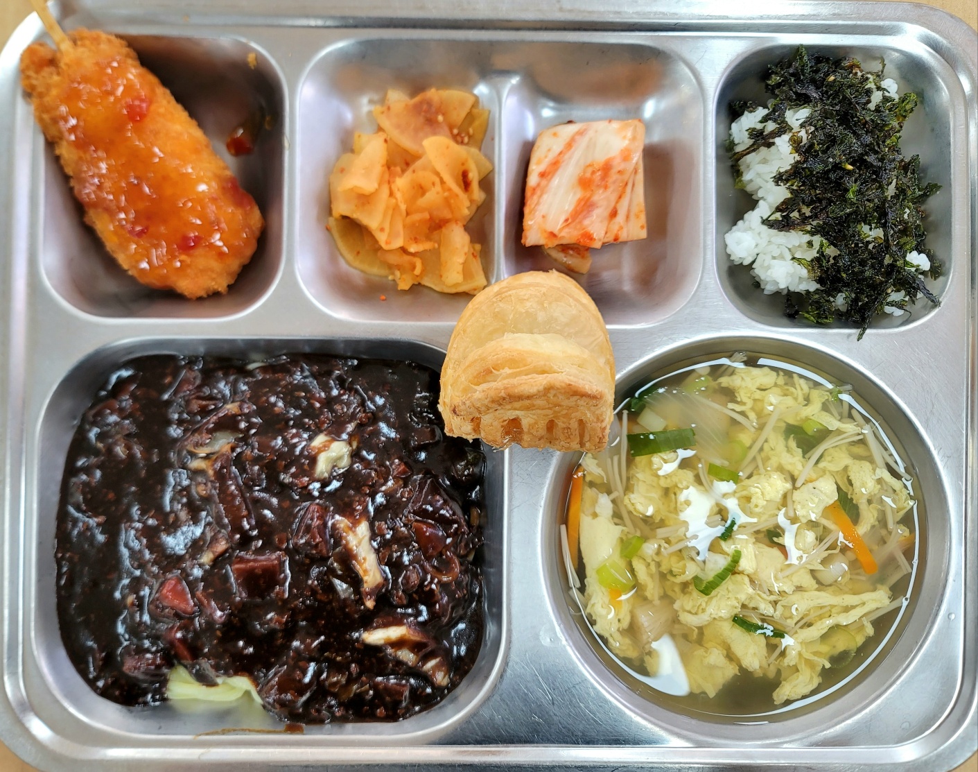 [중식] 미니밥*파래자반(자율),채식자장면,팽이버섯계란국,통새우꼬치*칠리S,배추김치,미니포켓애플파이