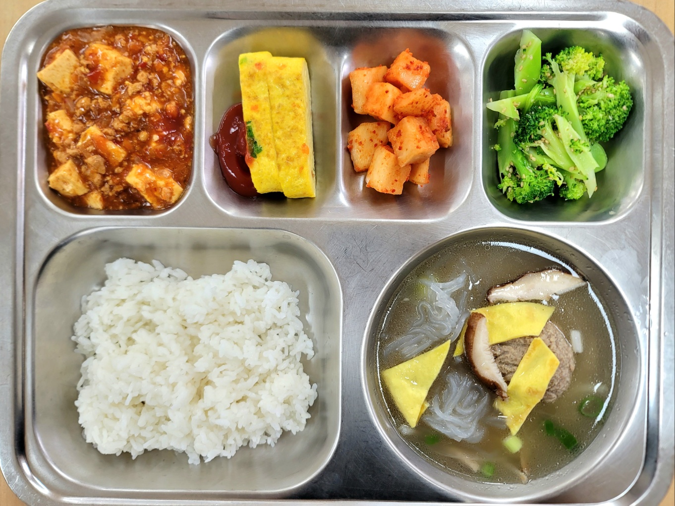 [석식] 친환경찹쌀밥,갈비완자탕,마파두부,달걀말이,브로콜리무침(자율),깍두기