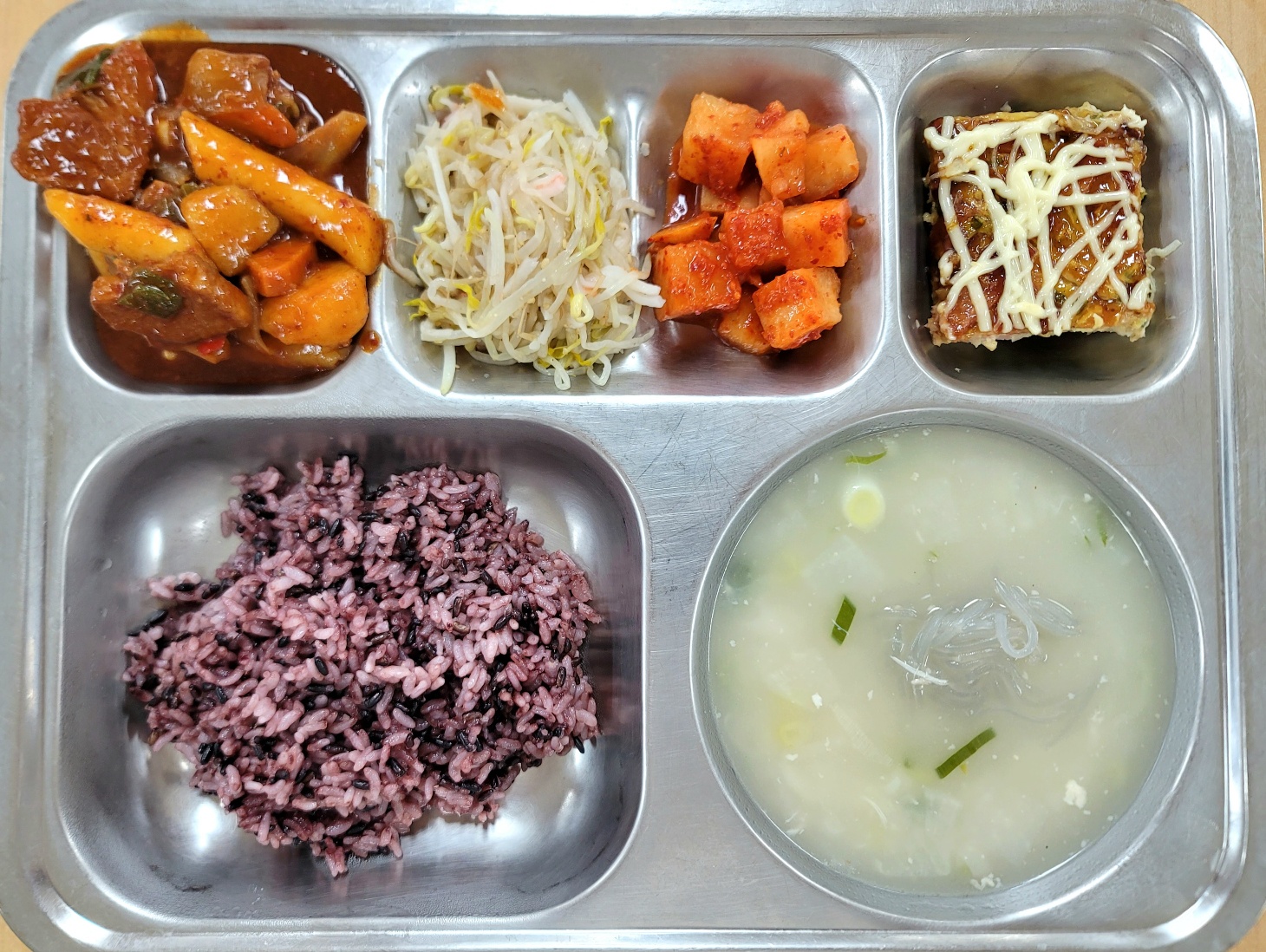 [석식] 찹쌀흑미밥,닭곰탕*당면사리,동인동식찜갈비,오꼬노미야끼,맛살숙주볶음,깍두기