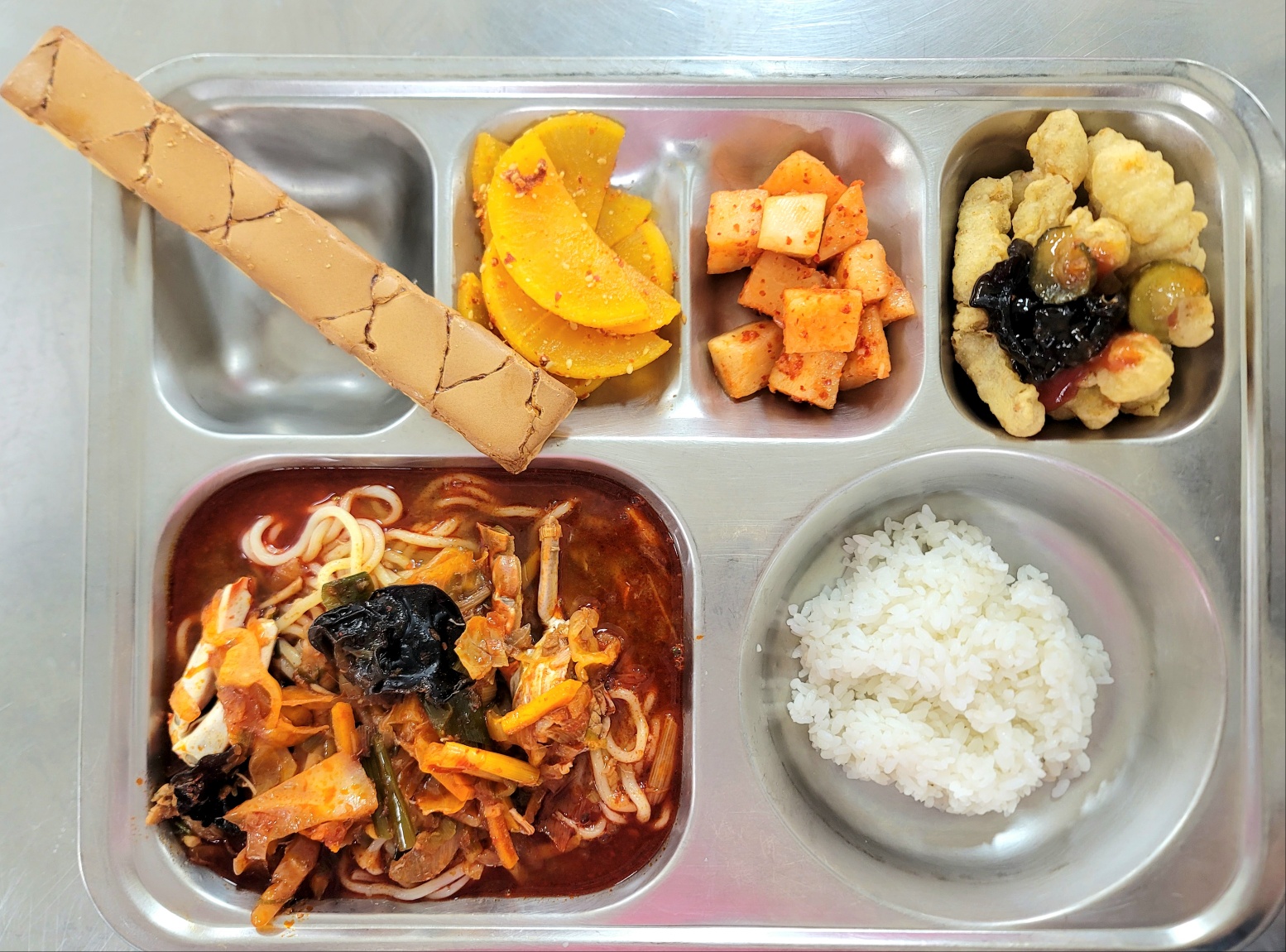 [석식] 미니밥(자율),용남해물짬뽕,파인베리찹쌀등심탕수육,단무지무침,깍두기,롱스틱누네띠네