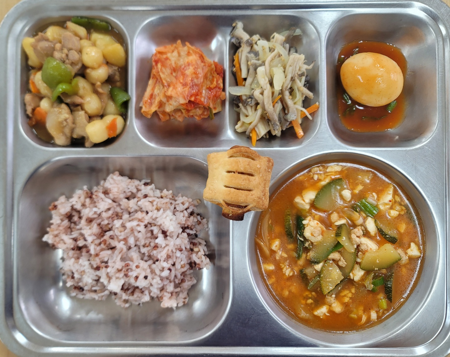 [중식] 차수수밥,순두부찌개,닭살간장조림,고추장달걀조림,애느타리버섯볶음(자율),배추김치