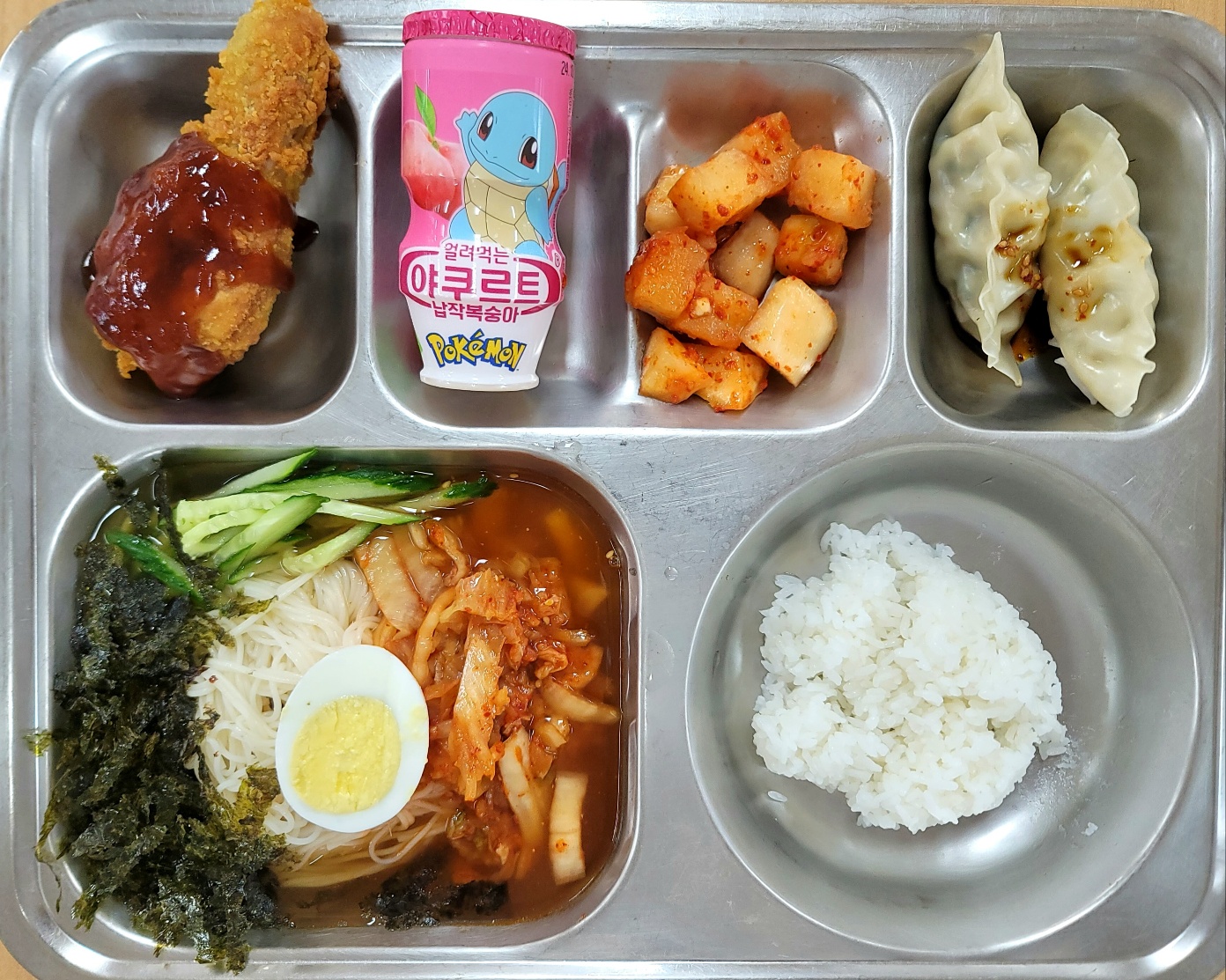[중식] 미니밥(자율),김치말이냉국수,왕교자찐만두,와사삭닭다리,깍두기,거꾸로요구르트
