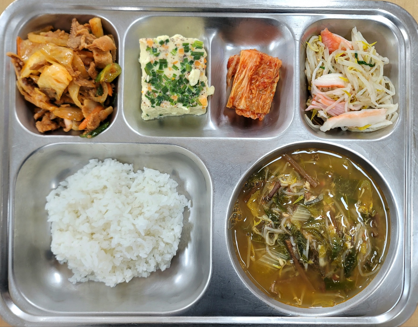[석식] 친환경찹쌀밥,장어국,오삼불고기,계란찜,맛살숙주나물무침,배추김치