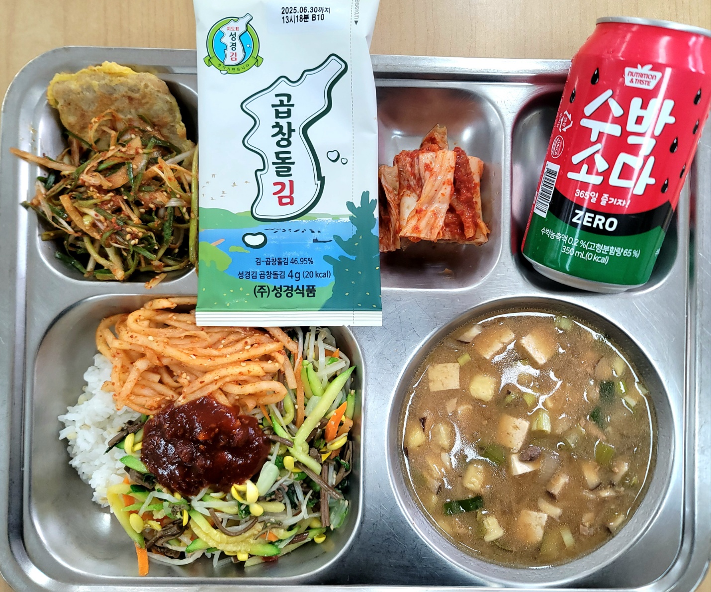 [중식] 나물비빔밥,강된장국,육전*파채무침,곱창돌김,배추김치,수박소다제로