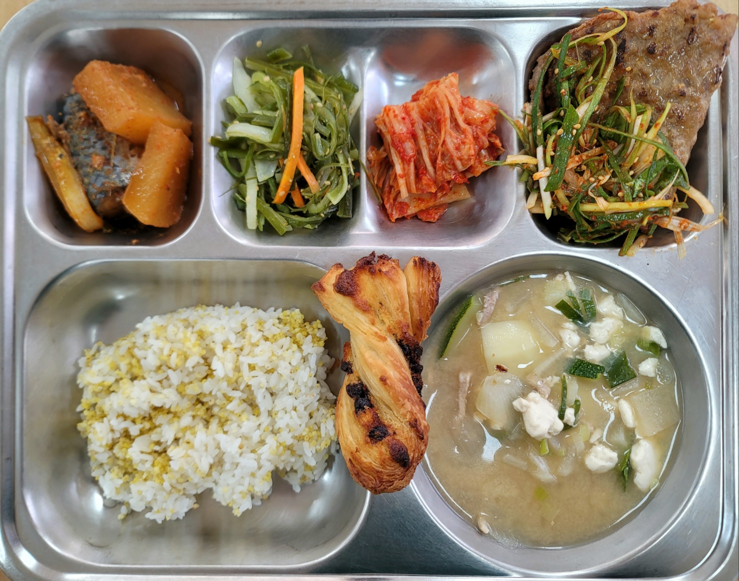 [중식] 기장밥,연두부된장국,언양식불고기*파채무침,고등어무조림(자율),미역줄기볶음(자율),배추김치