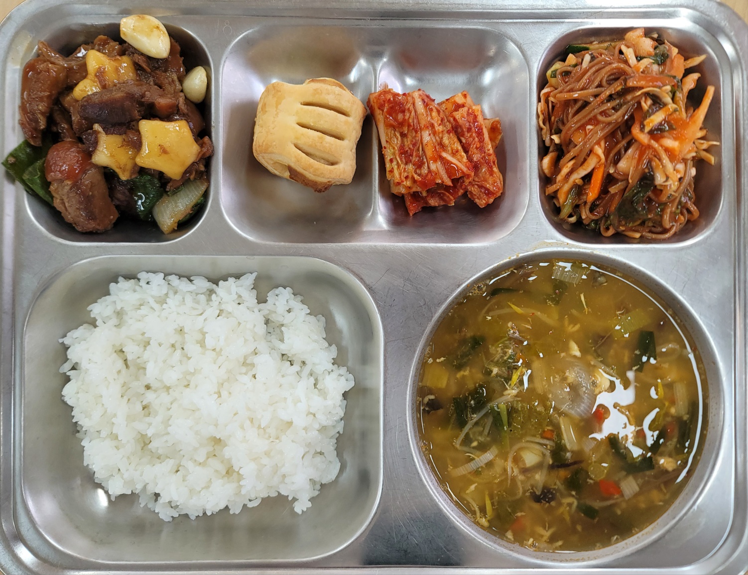 [중식] 친환경찹쌀밥,장어국,대파족발구이,비빔막국수,배추김치,바나나크림치즈파이