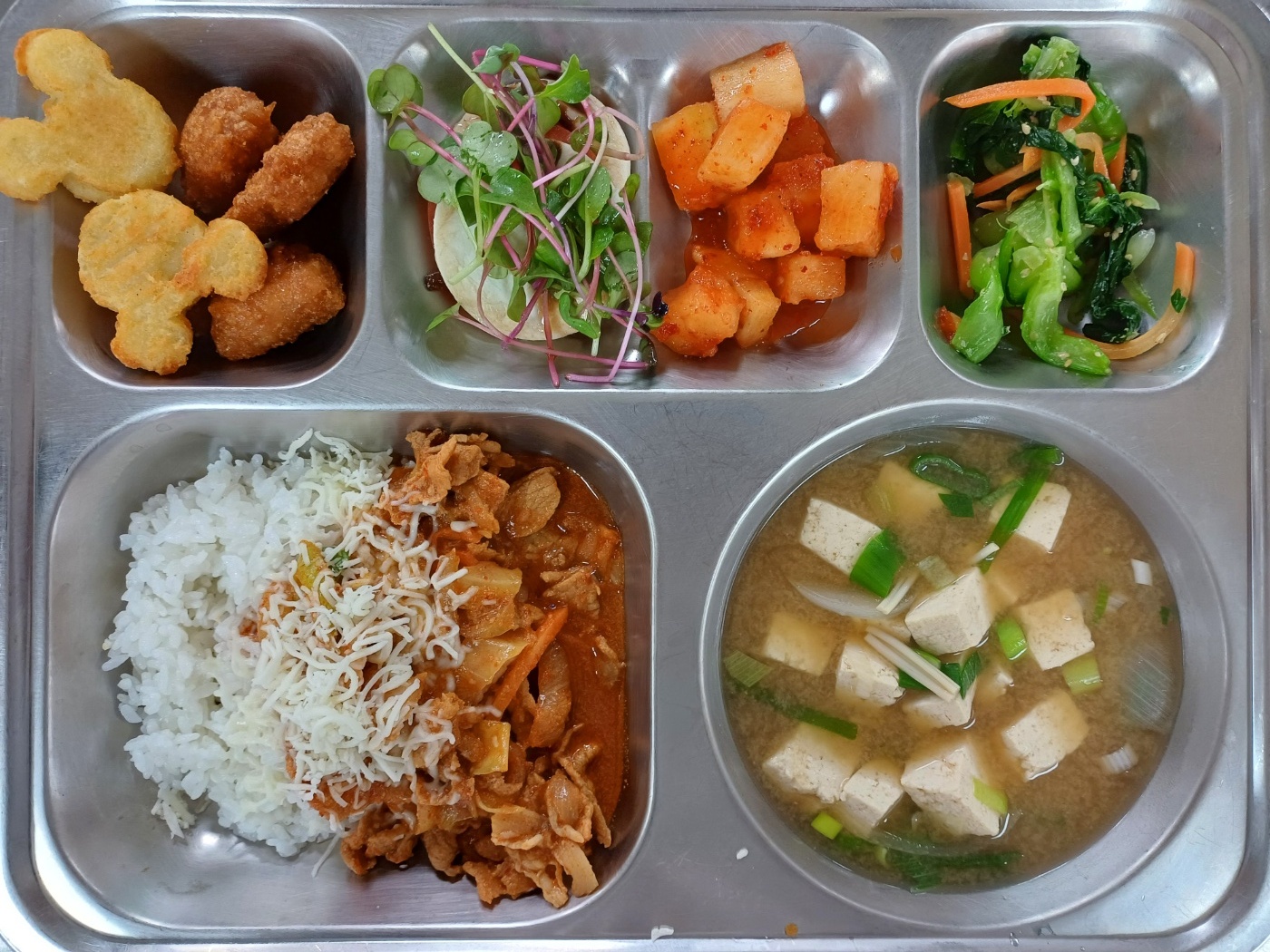 [중식] 눈꽃치즈제육덮밥,미소된장국,허니소이치킨&미키크로켓,카프레제샐러드,청경채나물(자율),깍두기