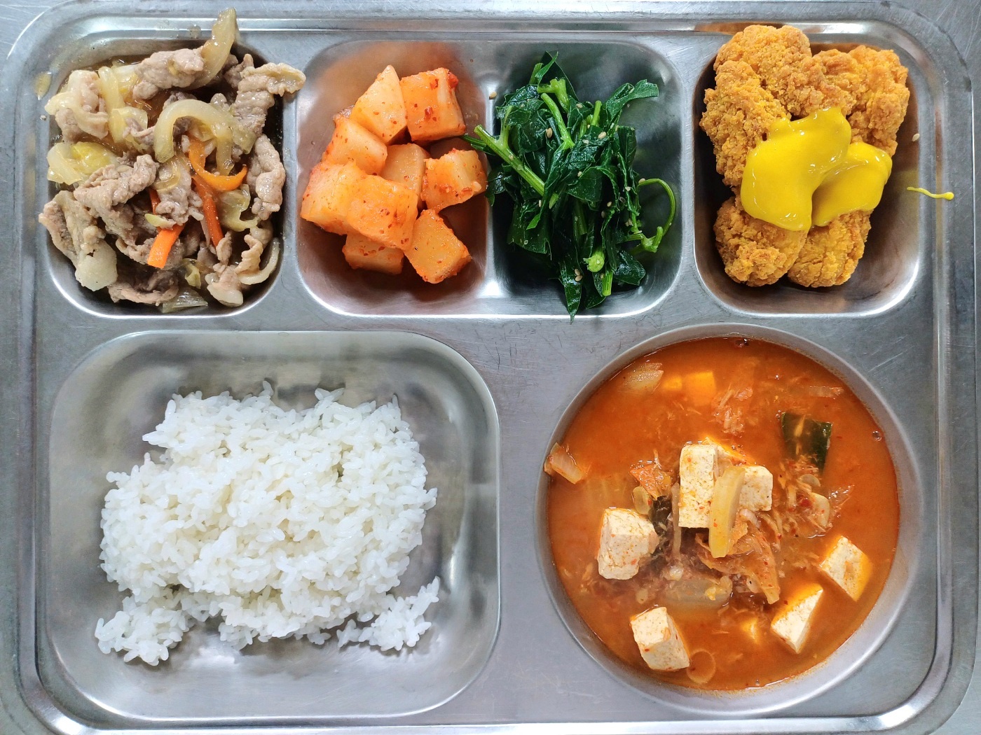 [석식] 친환경찹쌀밥,참치김치찌개,간장불고기,치킨텐더*머스터드,방풍나물무침,깍두기
