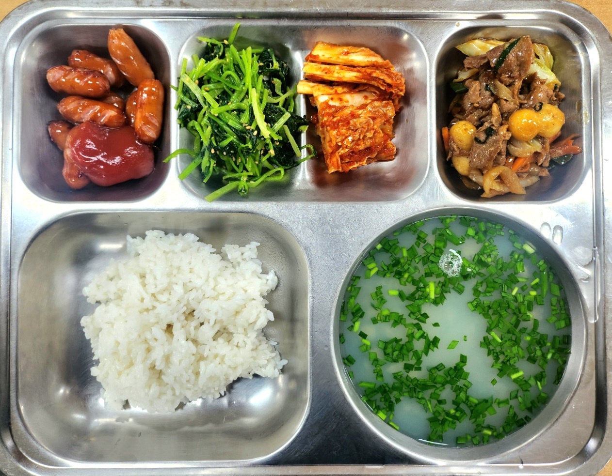 [조식] 친환경찹쌀밥,하동재첩국,오리간장불고기,비엔나구이*케첩,참나물무침(자율),배추김치
