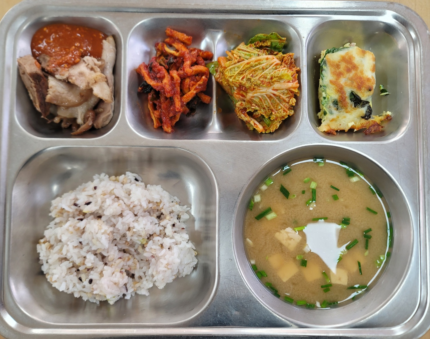 [중식] 친환경잡곡밥,미소된장국,깐깐슈바인족발,시금치프리타타,무말랭이무침(완제),봄동겉절이