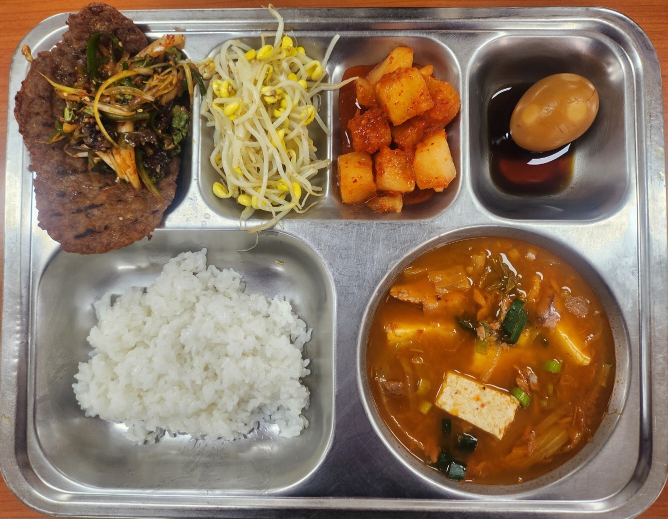 [조식] 친환경찹쌀밥, 참치김치찌개, 달걀장조림, 콩나물무침, 언양식불고기*파채무침