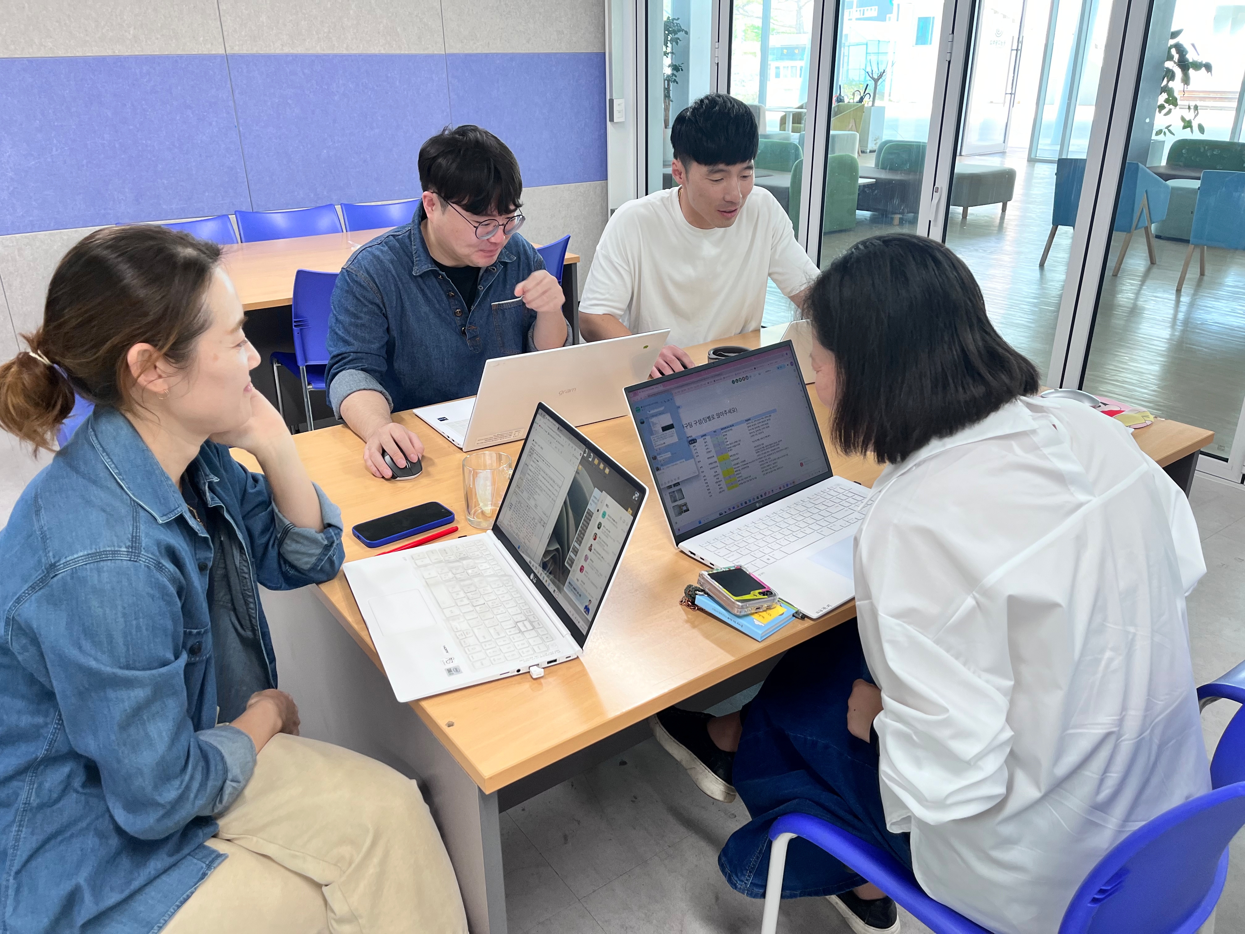 교과별 리더 선생님들과 함께 1학기 수행평가 계획 및 진행 상황 공유 및 연구주제들에 대해 함께 이야기하는 시간을 가졌습니다.