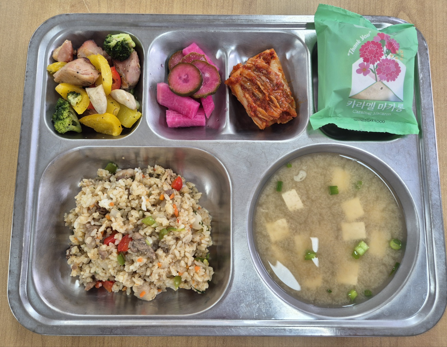 [중식] 목살필라프, 미소된장국, 허브치킨&구운채소, 수제피클, 카라멜마카롱, 배추김치