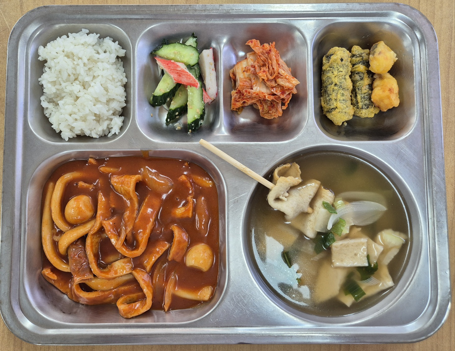 [중식] 기장밥, 꼬치어묵국, 후루룩밀떡볶이, 김말이&한입오징어튀김, 오이맛살무침, 배추김치