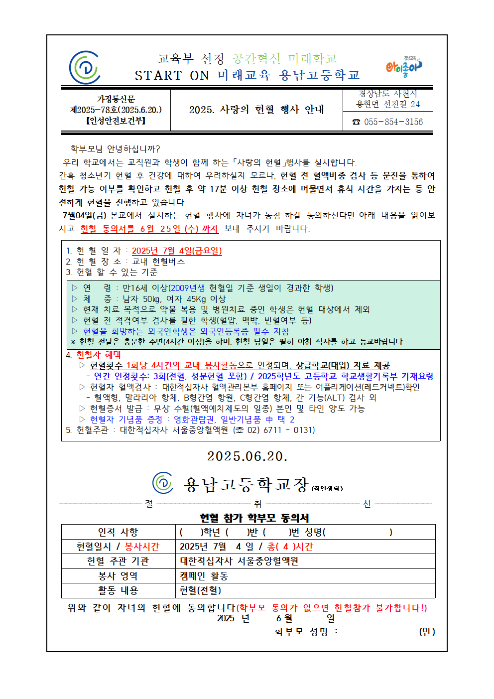 [2025-78호] 2025.1학기 사랑의 헌혈 실시안내