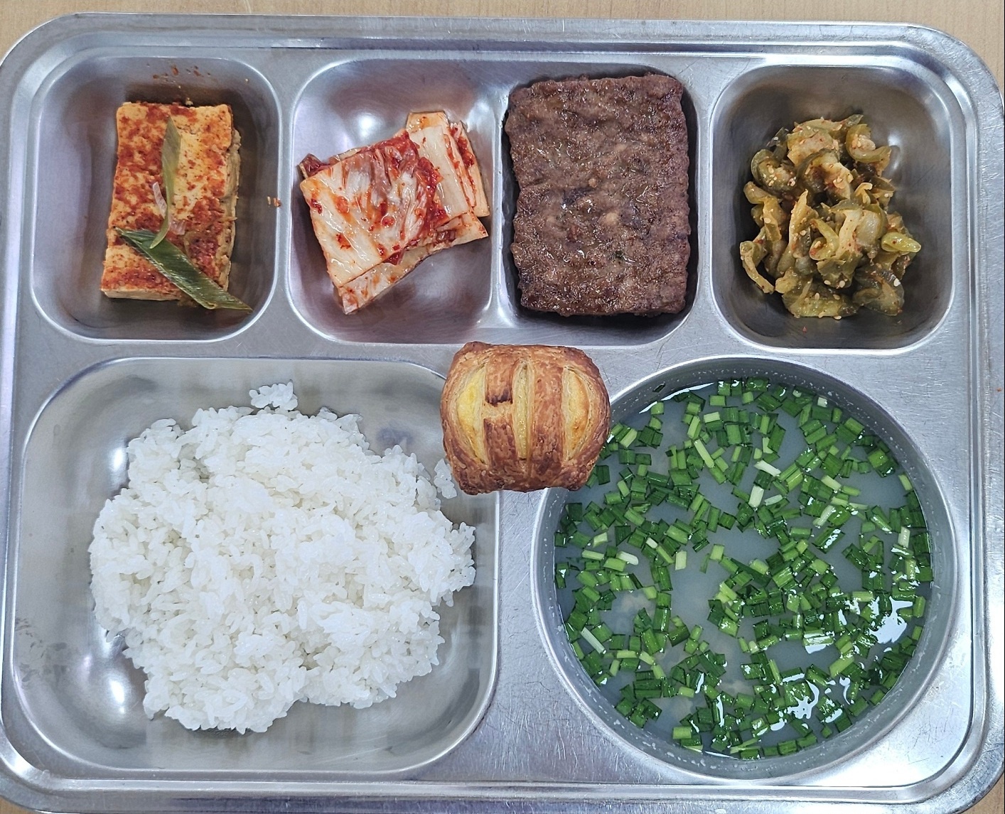 [조식] 친환경찹쌀밥, 하동재첩국, 남도떡갈비, 두부조림, 오이지무침, 배추김치