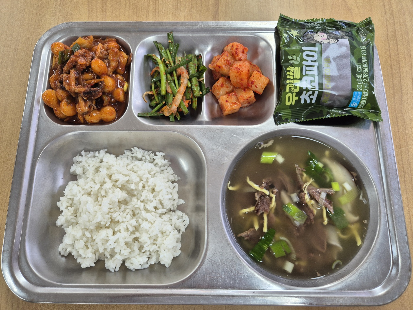 [중식] 친환경찹쌀밥, 한우나주곰탕, 쭈꾸미볶음, 부추겉절이, 섞박지(완제), 우리쌀초코파이