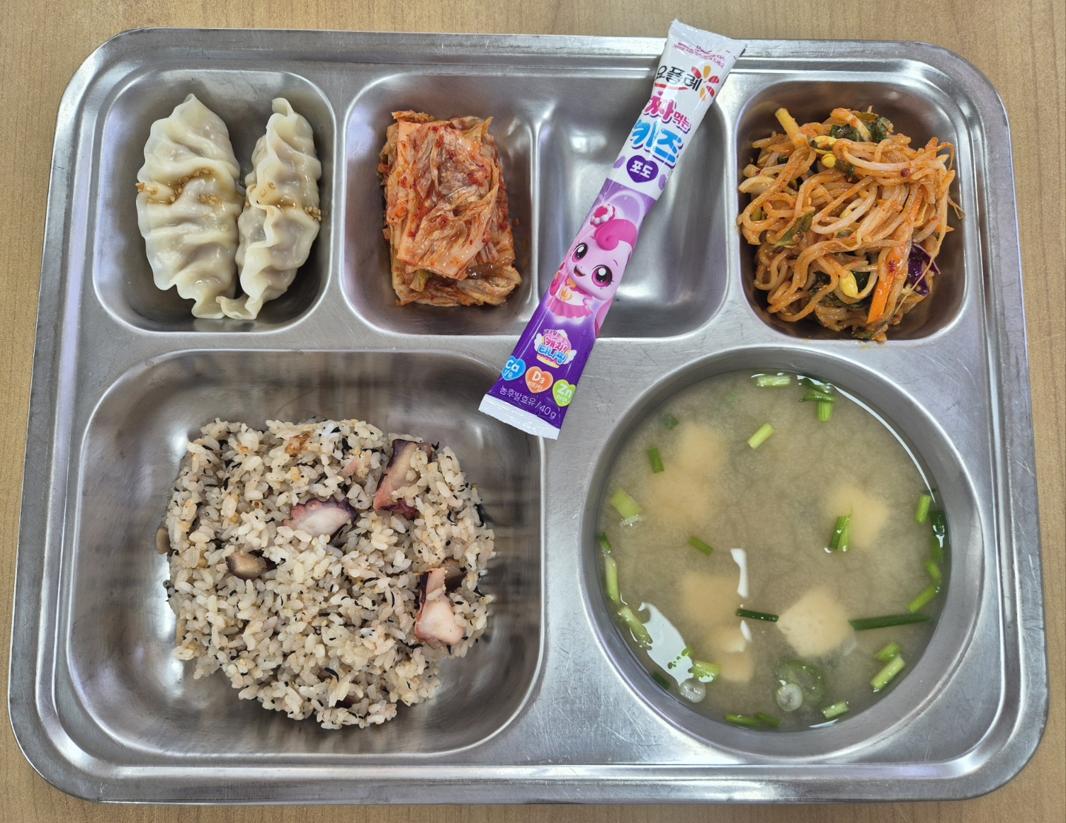 [중식] 문어솥밥, 미소된장국, 쫄면야채무침, 새우&홍게살만두, 배추김치, 짜먹는요거트