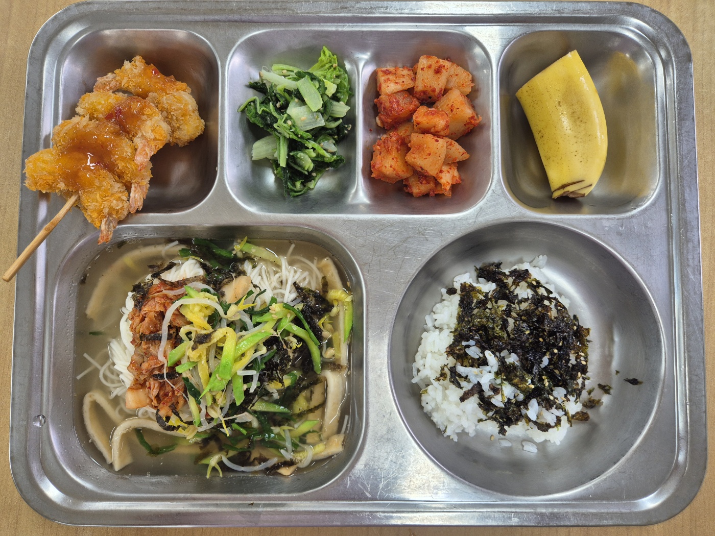 [석식] 미니밥*파래자반(자율), 잔치국수, 새우꼬치튀김*칠리s, 단배추나물(자율),깍두기, 바나나1/2