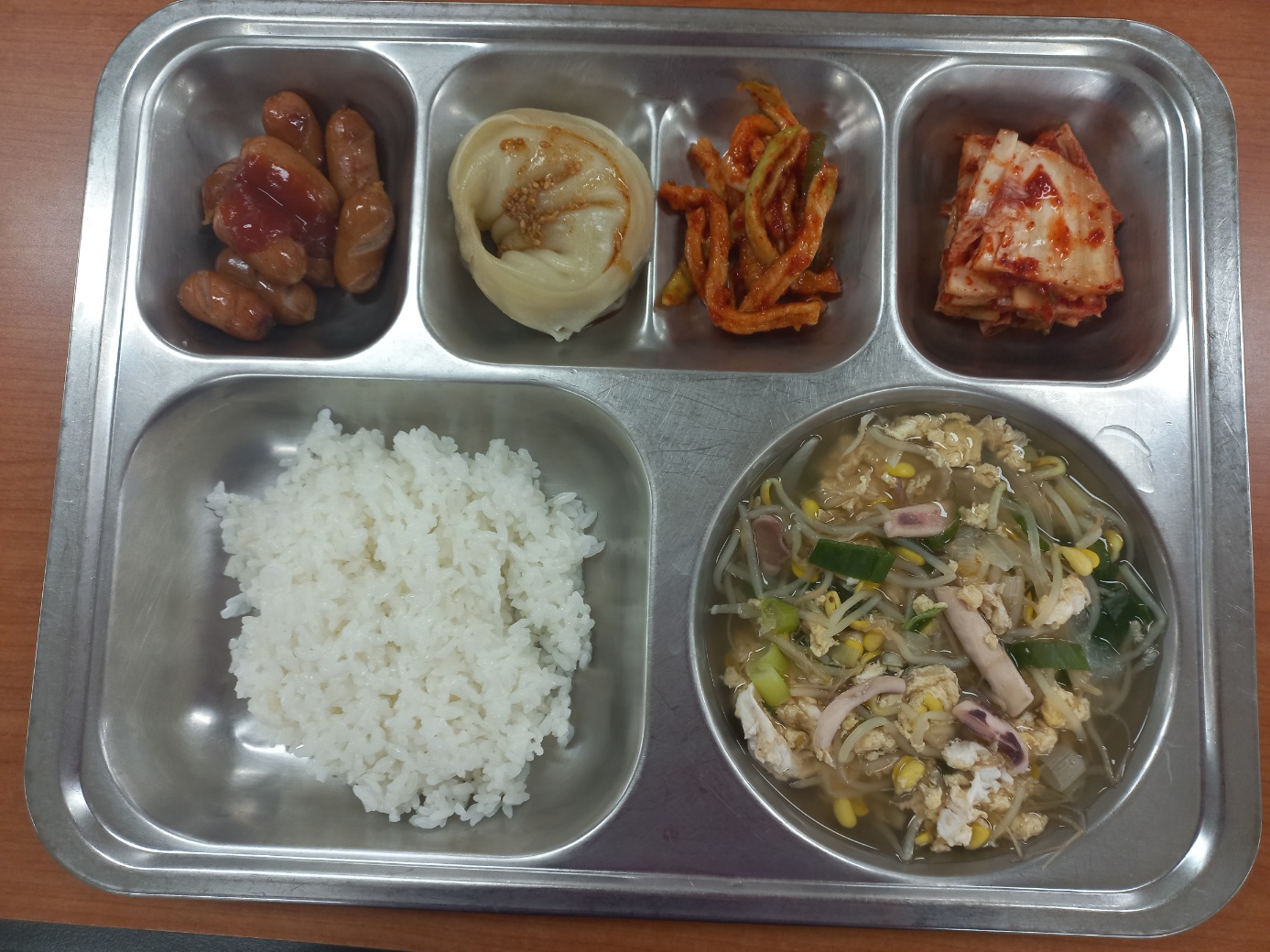 [조식] 친환경찹쌀밥, 전주식콩나물국, 비엔나구이*케찹, 이북식손만두, 무말랭이무침(완제), 배추김치