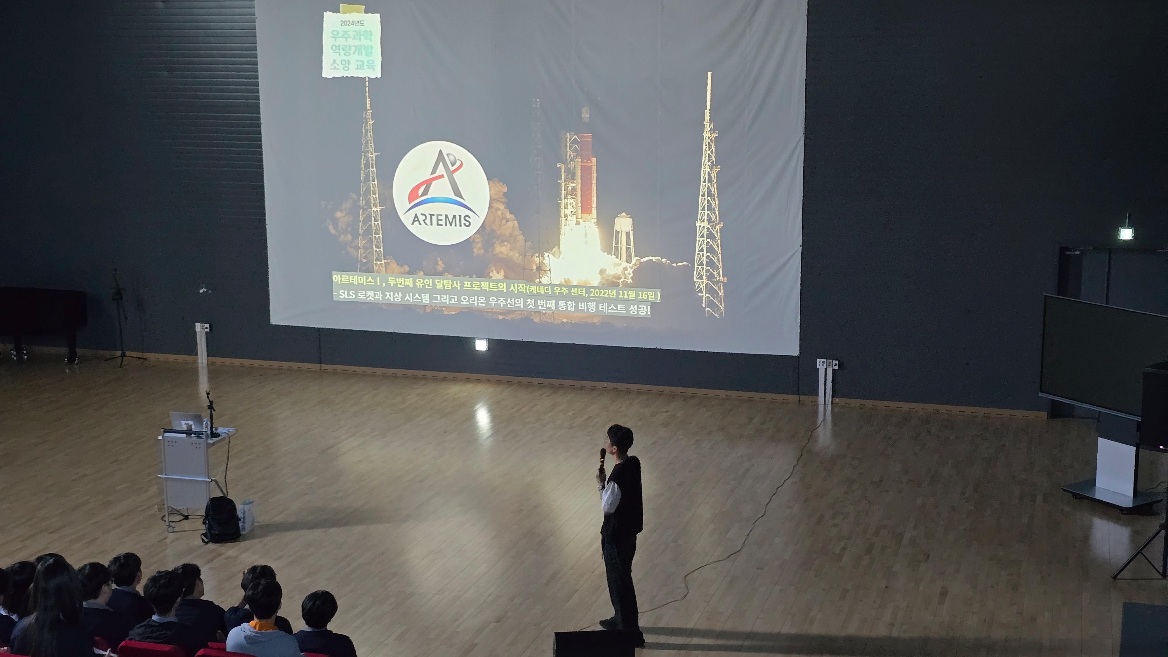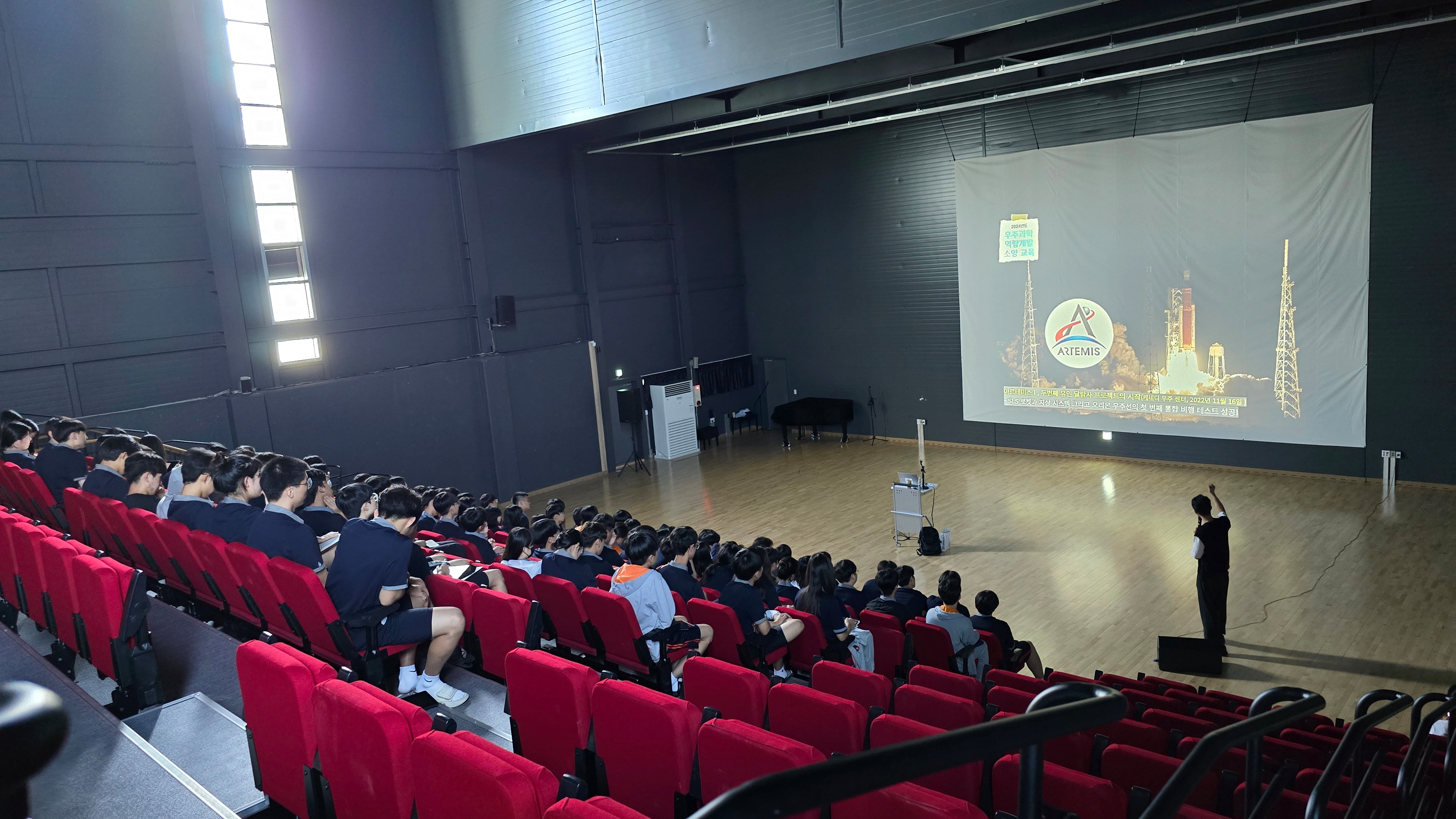 용남중,고등학교 미래교육관 콘서트홀에서 우주과학 역량개발 소양교육을 실시하였습니다.