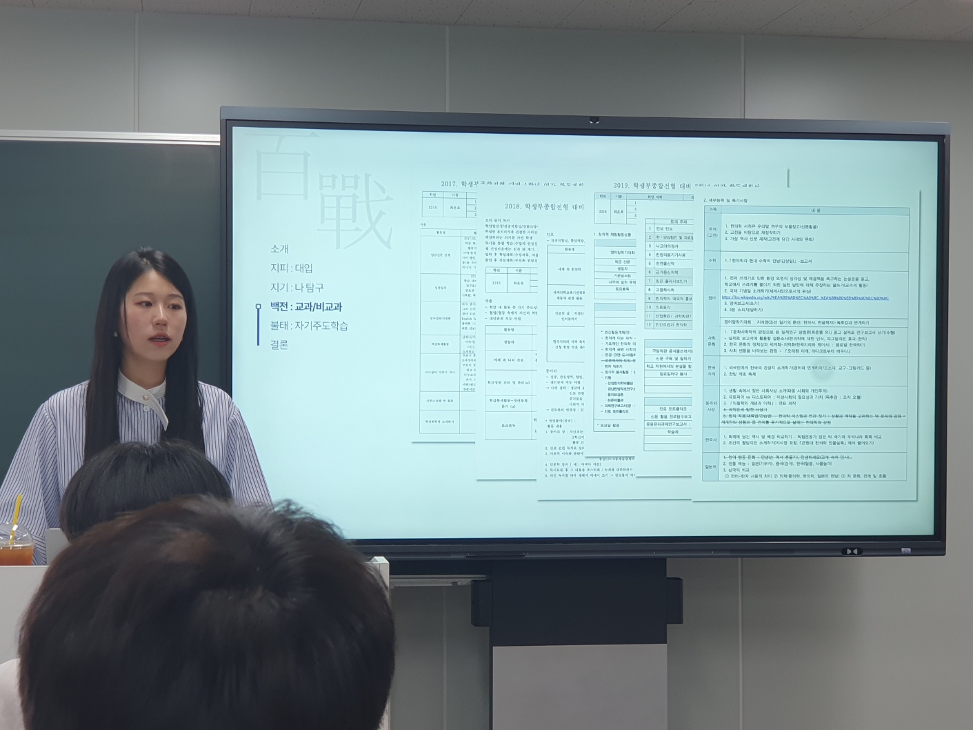 학생부종합전형을 준비하는 1, 2학년 학생을 대상으로 교과-비교과 영역 활동 계획 수립(연간활동계획 수립)과 기록, 자기주도학습 전략 및 자기 관리에 관해 2시간 동안 경험을 공유하는 시간을 가졌습니다.