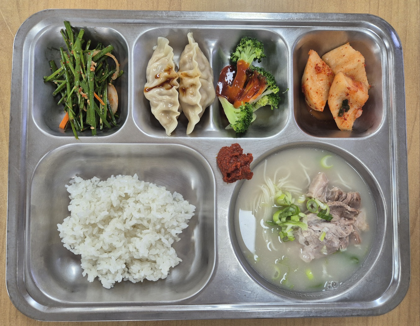 [석식] 친환경찹쌀밥, 남다른순살감자탕, 닭다리오븐구이, 애느타리버섯볶음, 깍두기, 피스타치오솔트쿠키