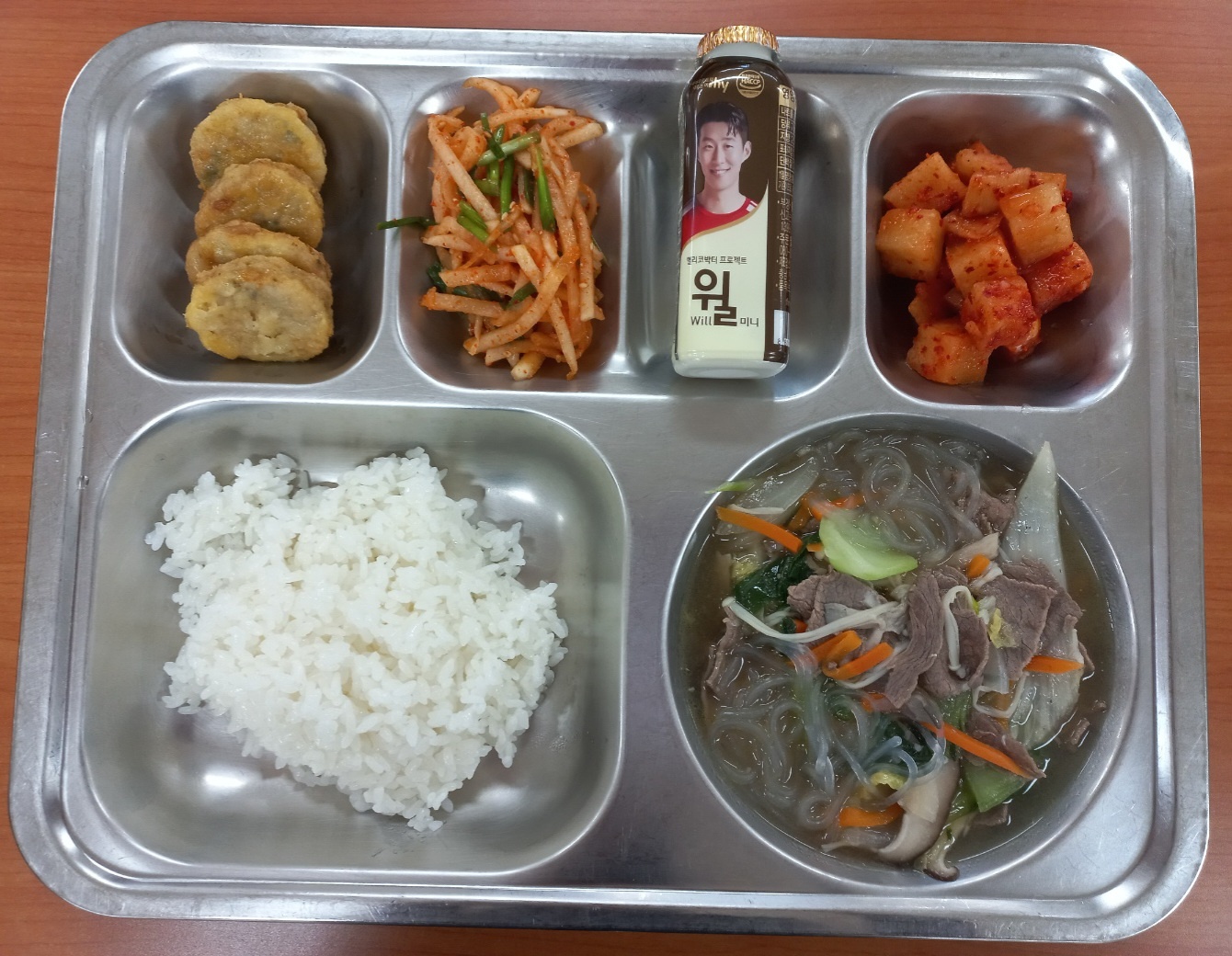[조식] 친환경찹쌀밥, 한우버섯전골*당면사리, 동그랑땡전, 잔파무생채, 배추김치,윌요구르트
