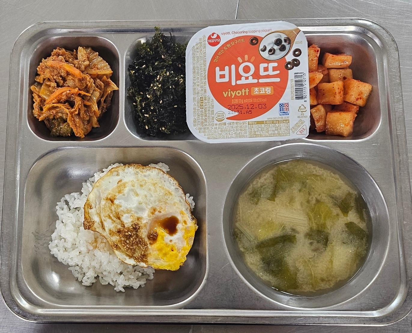 [조식] 간장계란밥, 시락국, 돈육김치볶음, 파래김자반, 깍두기, 비요뜨