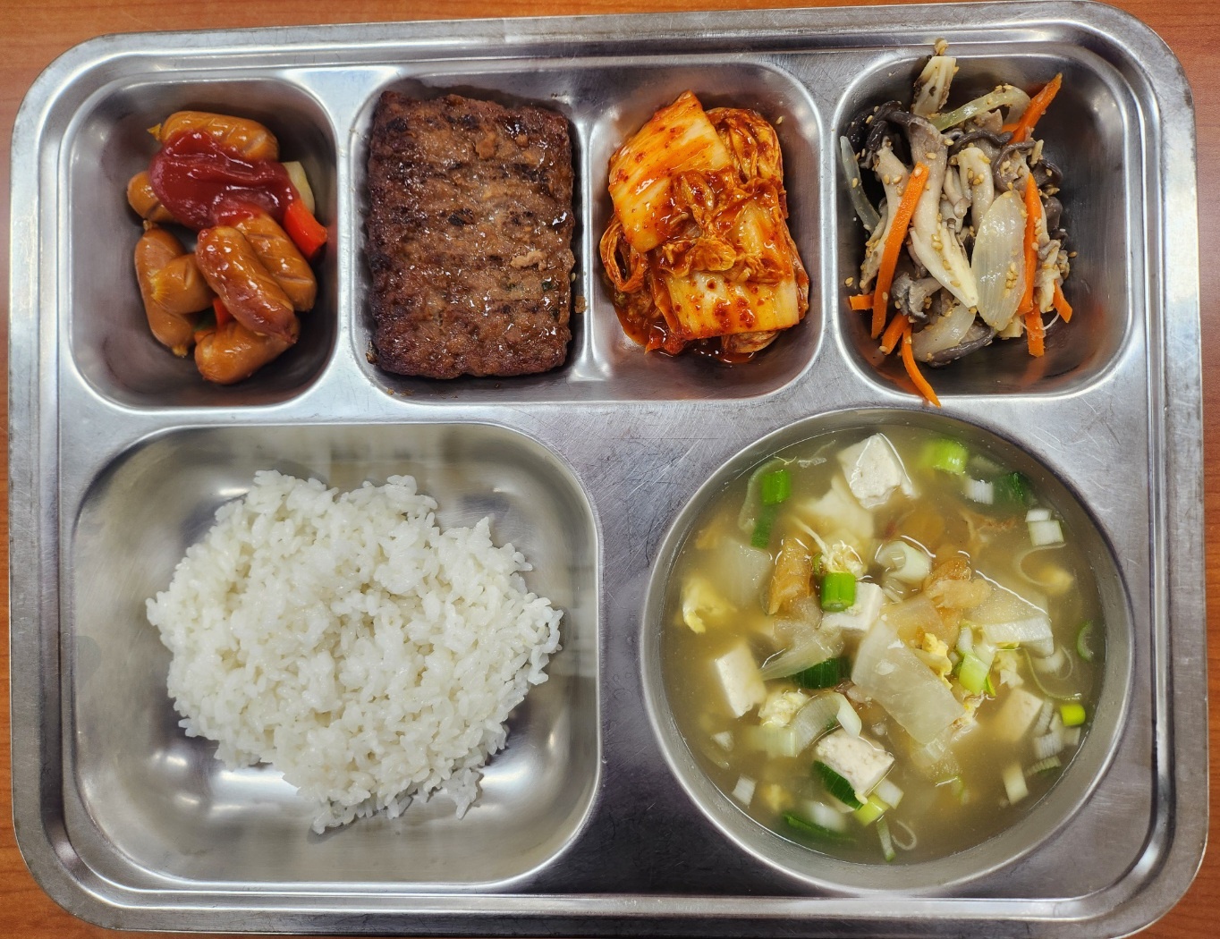 [조식] 친환경찹쌀밥, 황태계란국, 남도떡갈비, 비엔나야채볶음*케찹, 애느타리버섯볶음(자율), 볶음김치