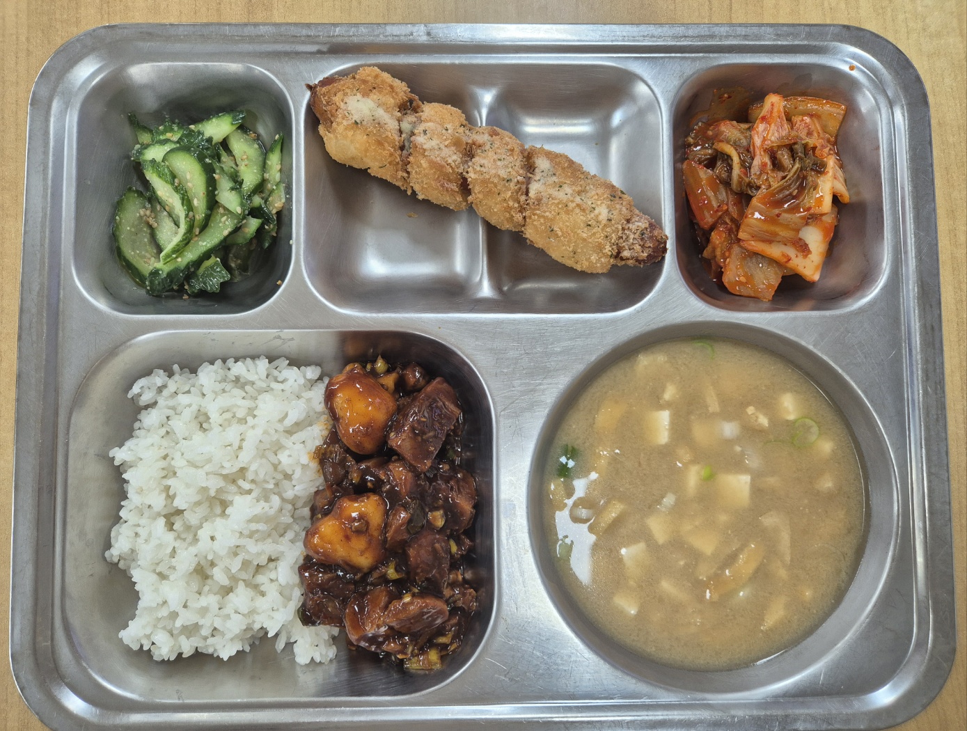 [석식] 매콤양념족발덮밥, 유부장국, 뱅글뱅글핫도그, 오이볶음(자율), 볶음김치