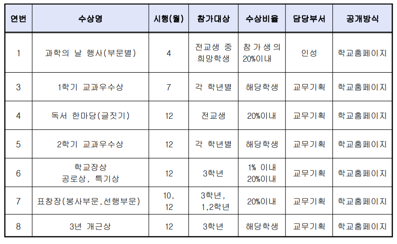 2024학년도 교내상 운영계획입니다. 참고하시기 바랍니다.