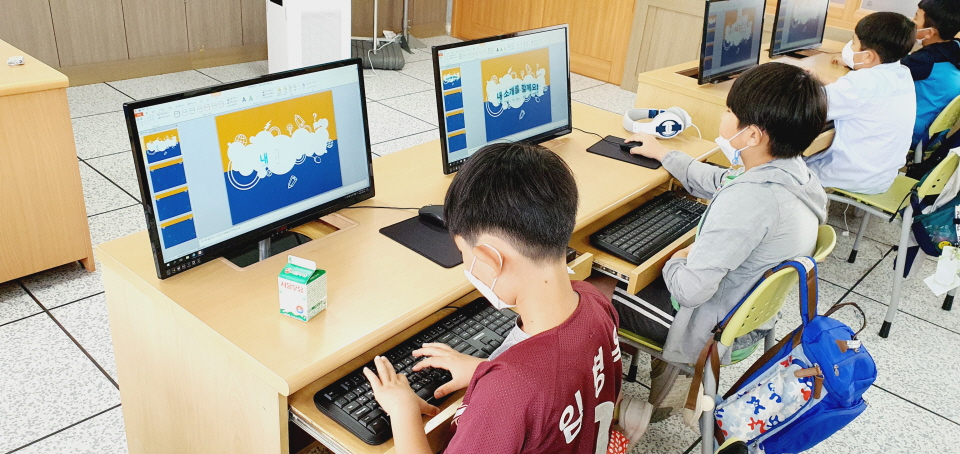 컴퓨터교실 3/4학년 - 파워포인트 기초(워드아트, 반사 효과, 네온 효과)