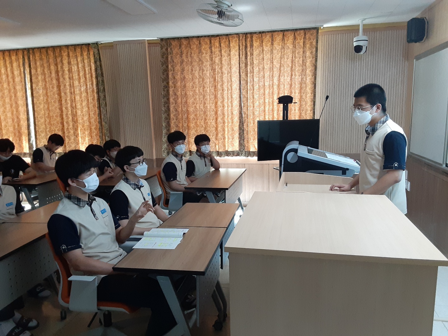 3학년 변○준 학생이 "페의약품과 한강의 괴물"이라는 제목으로 발표를 진행했습니다.
